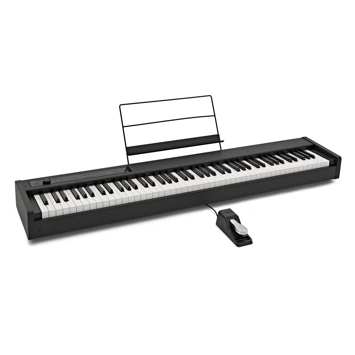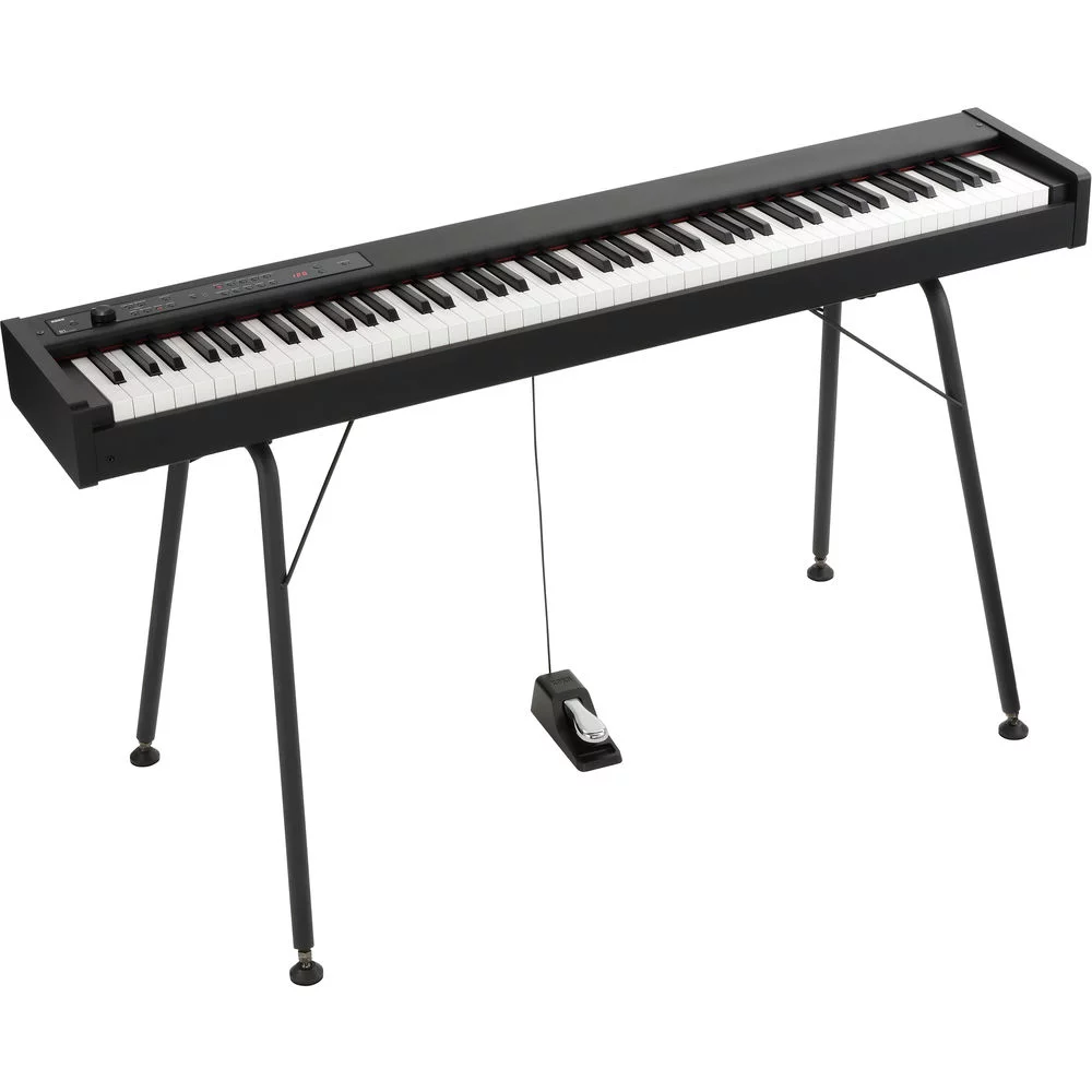Пюпитр для нот, необходимая для выступления на сцене, входит в стандартную комплектацию и может быть легко прикреплен к Korg D1. Также в комплект входит компактная демпферная педаль.