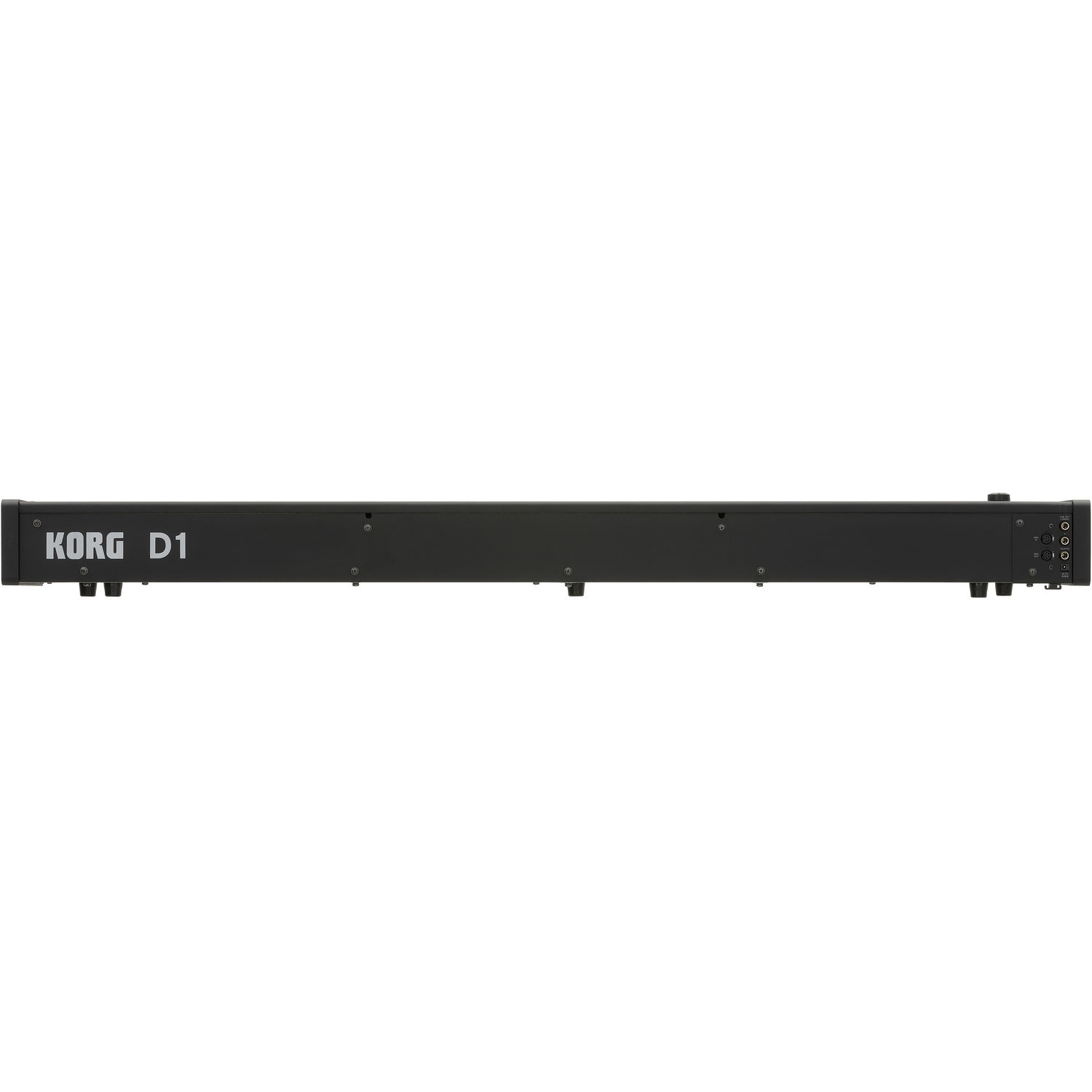 В Korg D1 предусмотрены разъемы для внешних подключений, которые понадобятся вам на сцене. Разъемы линейного выхода стандартного размера могут быть подключены непосредственно к активным колонкам или к записывающему оборудованию. Также предусмотрены разъемы MIDI IN/OUT. Вы можете подключить их через MIDI-интерфейс к своему компьютеру и использовать D1 в качестве MIDI-клавиатуры или фортепианного звукового.