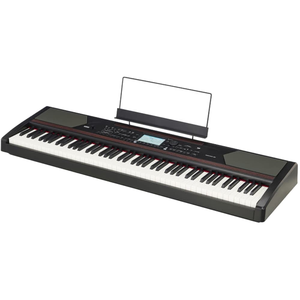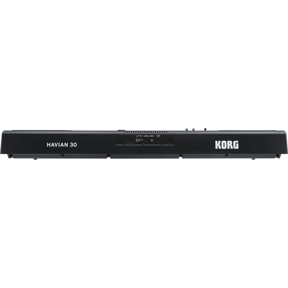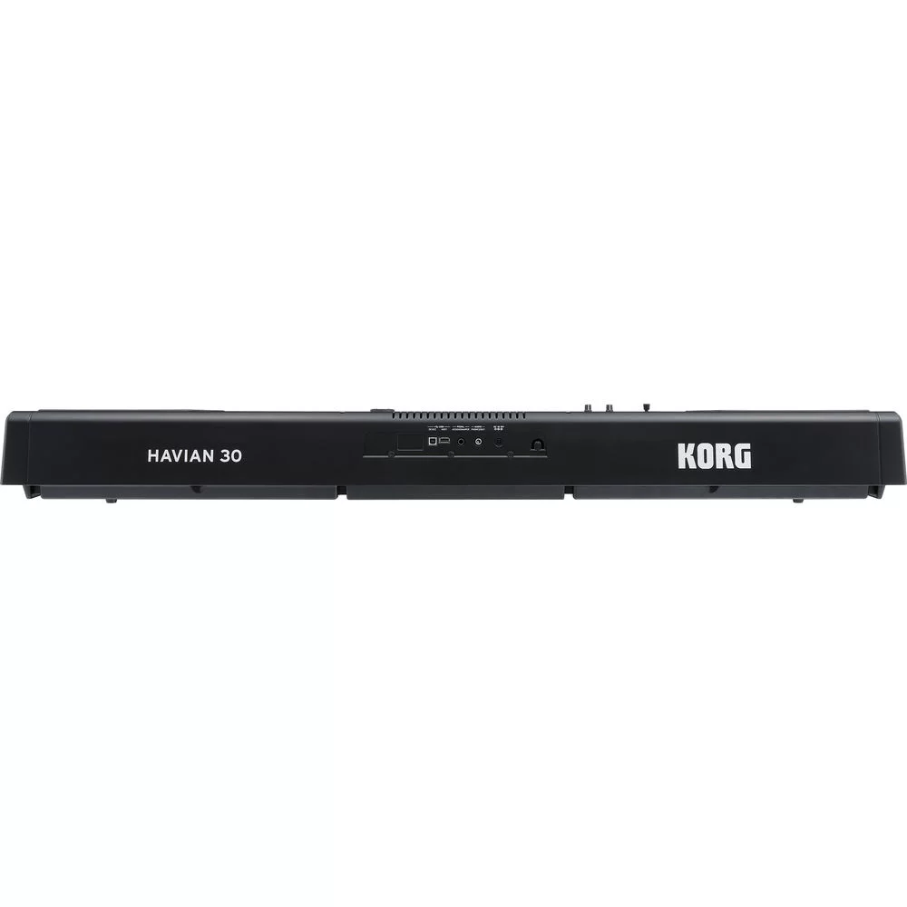 KORG HAVIAN 30 представляет собой цифровое фортепиано с аккомпанементом. Цифровое фортепиано HAVIAN 30 отличительно, элегантным, компактным корпусом. Фортепиано предлагает богатый набор звуков пианино, электропиано и тембры классического концертного рояля. Клавиатура имеет 88 взвешенных клавиш с натуральной молоточковой механикой. Клавиатура имеет чувствительность к скорости нажатия, она обеспечивает натуралистические ощущения игры как на настоящем концертном рояле. Секция автоаккомпонемента имеет большой набор музыкальных стилей для свободной игры в любом музыкальном стиле. Также есть аккордовый секвенсор и многофункциональная система редактирования тембров и стилей.