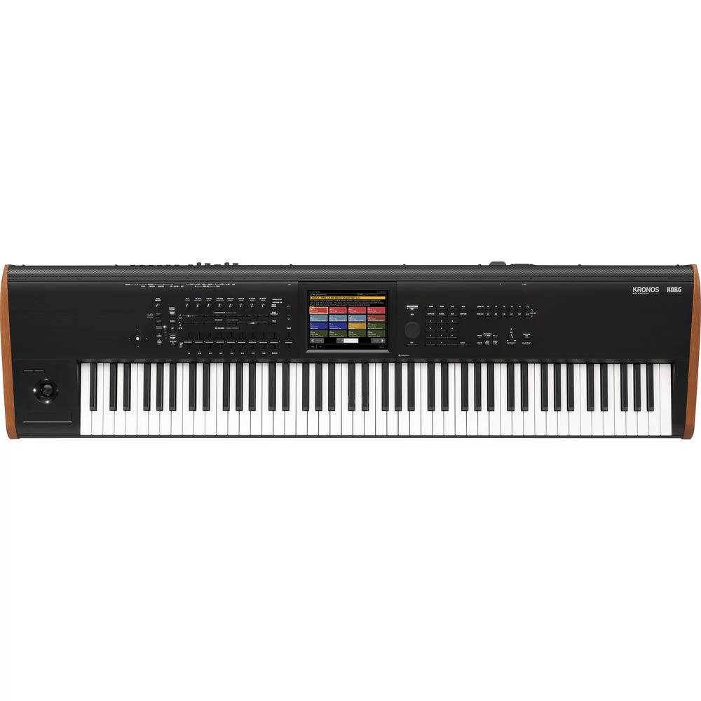 Компания Korg представляет обновленную рабочую станцию KORG KRONOS2-88, выпущенную в 2014 году. Рабочая станция представляет собой прекрасное сочетание современных цифровых технологий, дополненных богатым набором универсальных инструментов для творчества. KRONOS2-88, приведший на смену KRONOS-88 станет прекрасным решением для живых выступлений, а также для профессиональной звукозаписи в студии. После выпуска популярной модели рабочей станции KRONOS, инженеры компании Korg существенно расширили эту модель, добавив в нее абсолютно новые библиотеки звуков, размер которых составляет порядка 21 Gb. В первой модели база звуков занимала не более 12Gb. Среди функциональных особенностей следует отметить целый ряд новых эксплуатационных функций, которые включают в себя оригинальный цветовой режим, визуально облегчающий работу со станцией и звуками, особенности глубокой настройки звучания и многое другое. Также рабочая станция поддерживает функцию управления звучанием прямо на сенсорном экране, поэтому, если Вам необходимо переместить или отрегулировать значение, сделать это можно при помощи касания или перетаскивания блоков прямо на экране.