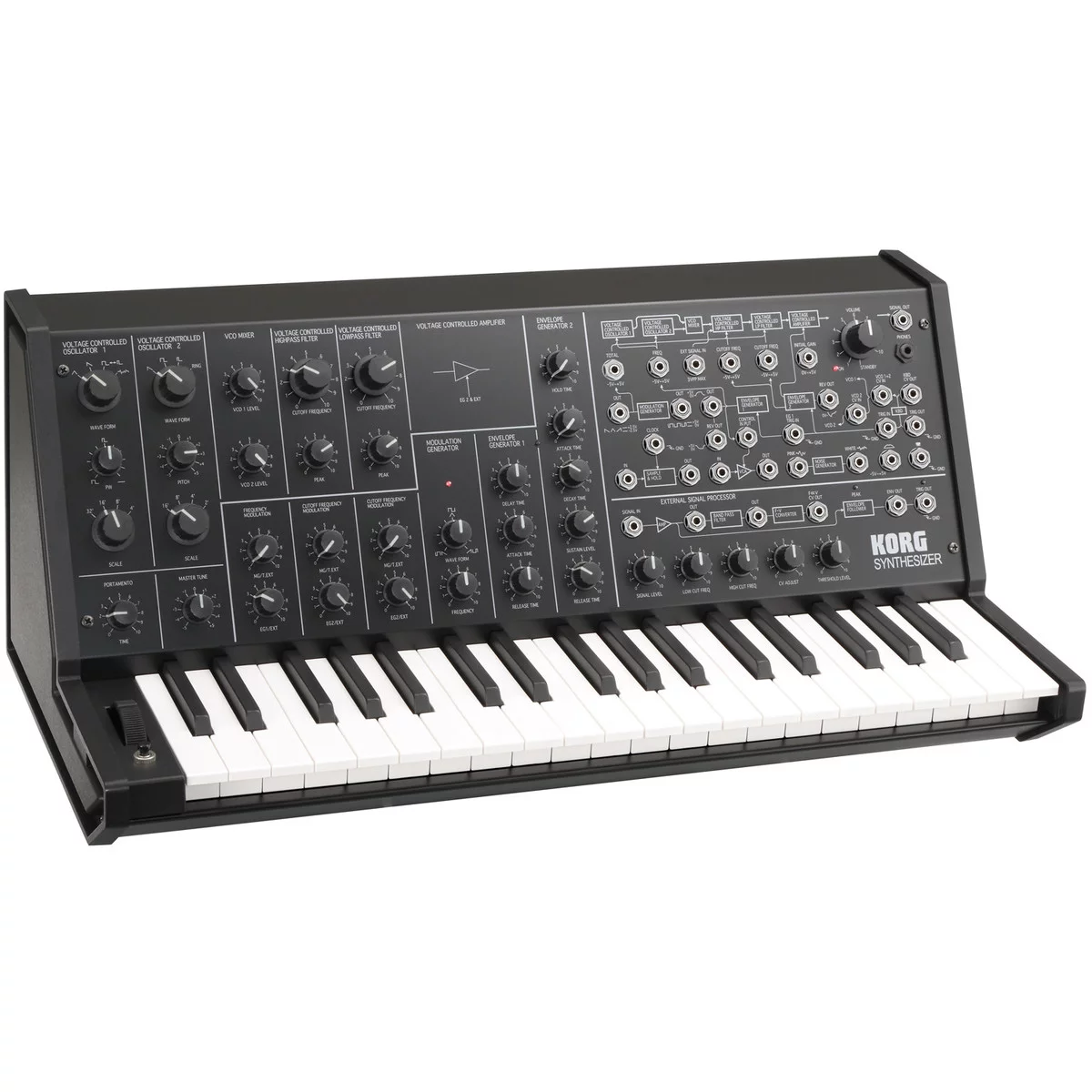 KORG MS-20 Mini воспроизводит отличительный синтез KORG MS-20: два генератора с кольцевой модуляцией и генераторы огибающей с удержанием и задержкой. VCA сохраняет базовую схему оригинала, но она была доработана, чтобы производить меньше шума, чем оригинал.