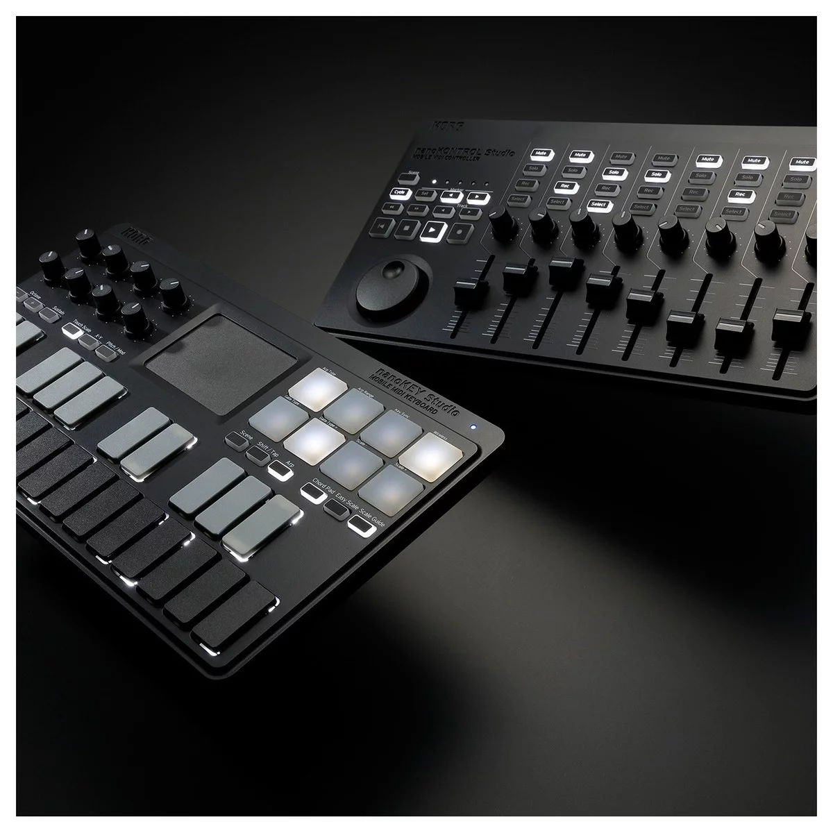 Korg NanoKey-ST Studio - клавишный компактный USB-MIDI контроллер, 25 клавиш с подсветкой, 8 пэдов, 8 поворотных регуляторов, сенсорная панель, подключение по bluetooth или USB.