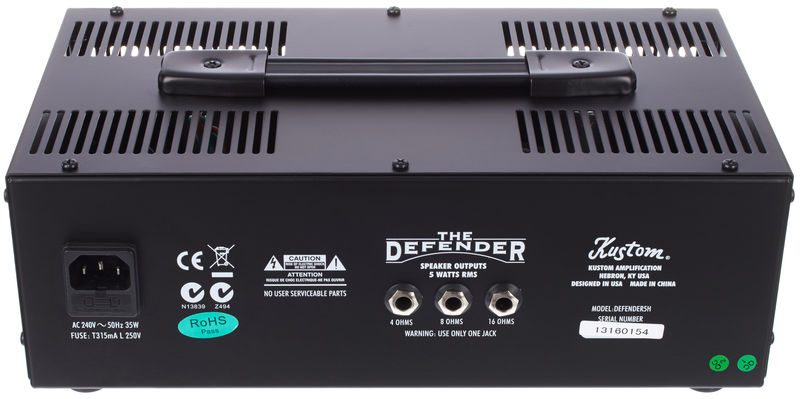 Звук в Defender 5H формируется всей ламповой схемой сразу, и, поворачивая ручку громкости, вы не только поднимаете уровень, но и прибавляете драйва. После чего остается только отрегулировать яркость ручкой тембра. Найти новые нюансы звучания усилителя можно также, экспериментируя с дополнительными кабинетами – вам открыто много вариантов благодаря трем выходам с различным сопротивлением. Рекомендуем при возможности попробовать V5 с кабинетом 4х12”, вы удивитесь, на что он способен!