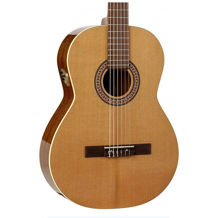Concert - профессиональные гитары с корпусом из массива красного дерева, и кедровой верхней декой, естественно, тоже из массива, как и на всех гитарах LaPatrie. Накладка грифа и бридж— палисандровые.