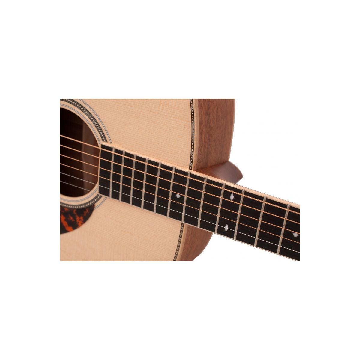 Из внешних модификаций это открытая колковая механика и ромбовидные точки из перламутра на грифе гитары.