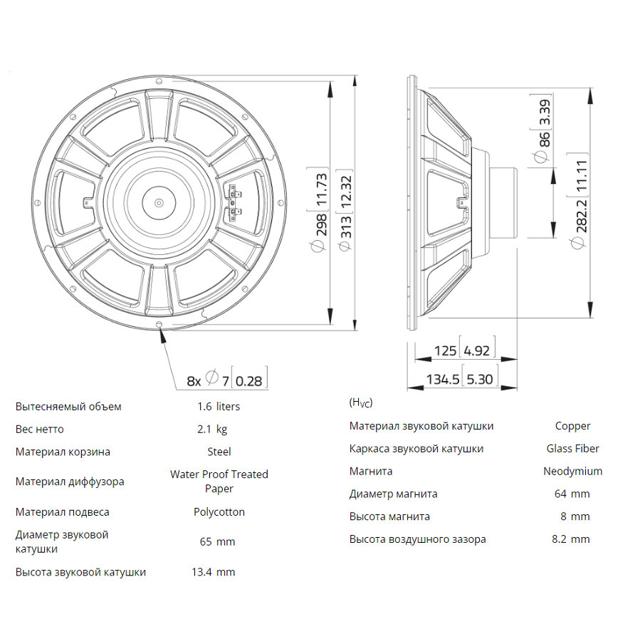 - Рабочий объем драйвера, л (куб. футы ): 0,2 (0.008)