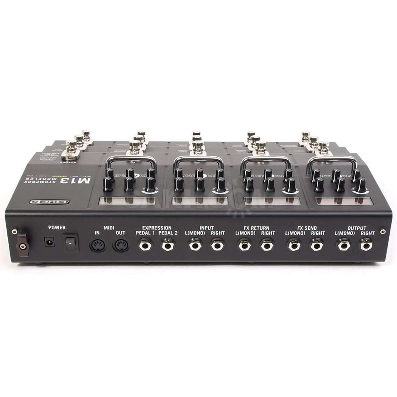 Line 6 M13 Stompbox Modeler представляет собой напольный гитарный процессор-педалборд. Устройство несет на борту более 75 моделей педалей эффектов (более 100 в новой версии прошивки от Line6). Гитаристам доступна возможности использования 4 педалей эфФектов одновременно, причем в любом порядке и в любом наборе. Есть 12 переключаемых сцен и конфигураций работы педалборда. Интегрированный лупер на 28 секунд с отдельными кнопками функций Undo, Record/Overdub, Play/Stop, Half Speed поможет организовать более оригинальное выступление и музыкальное шоу.