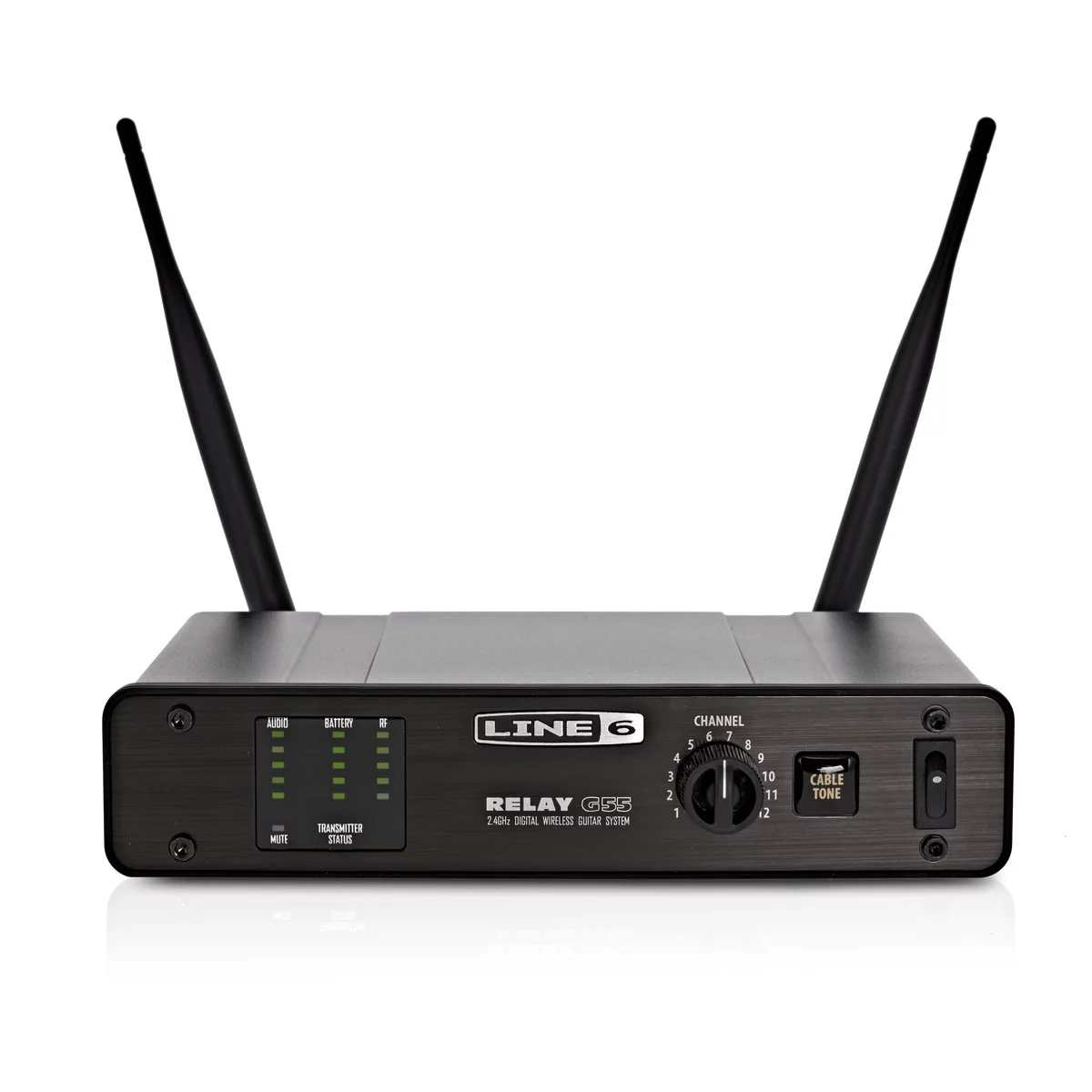 Приемник радиосистемы полностью готов к использованию при включении. Для того, чтобы сократить количество помех, например ТВ-вышки, системы оповещения, ретрансляторы мобильной связи и пр., радиосистема работает в радиочастотном диапазоне 2.4 гГц. Как правило обычные радиосистемы, которые используют UHF-диапазоне, по прежнему являются уязвимыми для подобных помех даже на большом расстоянии. Радиосистема использует запатентованную систему цифровой передачи звукового сигнала. Динамический диапазон радиосистемы 117 дБ., радиодиапазон - 2.4 гГц., количество перестраиваемых каналов - 12. Время работы батареи передатчика до 8 часов непрерывного использования. Цифровая гитарная беспроводная система Line 6 Relay G55 станет хорошим приобретением для любителей и профессионалов.