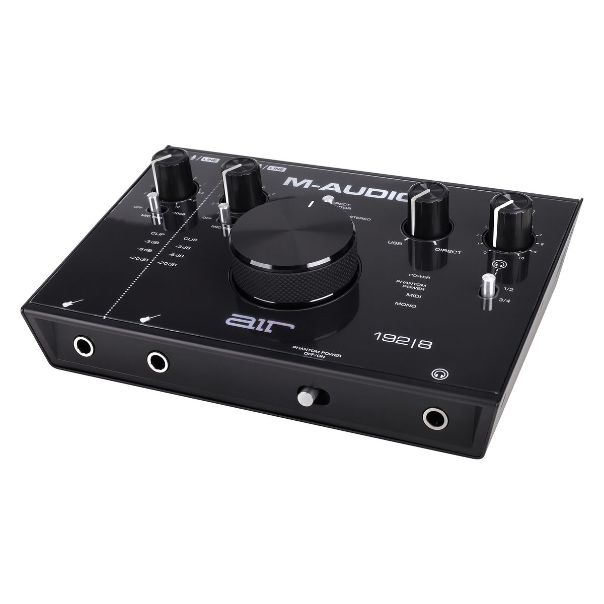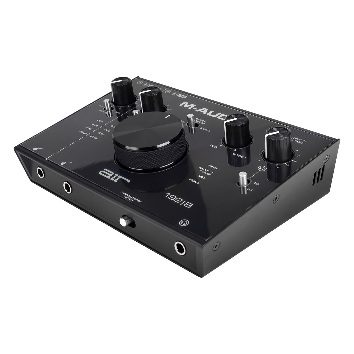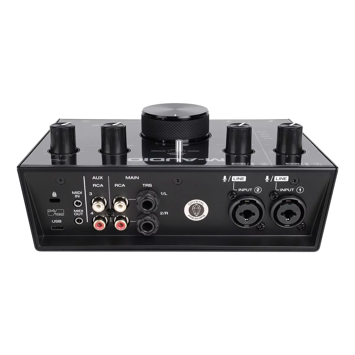 M-Audio AIR 192 | 8 - компактный USB-аудиоинтерфейс, оснащенный двумя входами и четырьмя выходами. Интерфейс имеет разрешение 24 бит / 192 кГц для профессиональной записи и мониторинга. Высокоскоростной тракт USB служит для быстрого соединения с минимальной в своем классе задержкой 2,59 мс на передачу данных в оба направления. Предусилители CrystalTM обеспечивают максимальную прозрачность звучания. Устройство имеет гибкие возможности подключения: 2 комбинированных входа XLR/TRS с кнопкой -10 дБ для микрофона или инструментов. Используйте любую комбинацию входов на двух каналах: пара XLR/TRS, пара инструментальных либо по одному каждого типа. Имеется MIDI-вход/выход для подключения практически любого внешнего MIDI-оборудования. На задней панели расположены стерео 1/4 дюймовые TRS и RCA выходы с переключателем моно/стерео и 2 назначаемых вспомогательных выхода RCA. Также имеется выход для наушников TRS 1/4 дюйма c переключением источника и регулятором уровня громкости. Интерфейс имеет прочный металлический корпус и снабжен большой ручкой для легкой регулировки громкости. Также имеется ручка USB/Direct для изменения баланса между входным сигналом и сигналом компьютера. В комплект поставки входит также кабель USB-C на С, кабель USB-C на A, два 1/8" MIDI-адаптера и адаптер питания. В комплект также входит сборник ПО, включающий Pro Tools First, Ableton Eleven Lite, 20 Avid Effects, Vacuum и Boom.