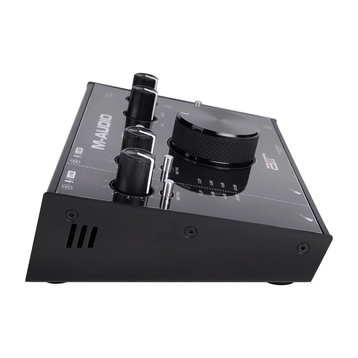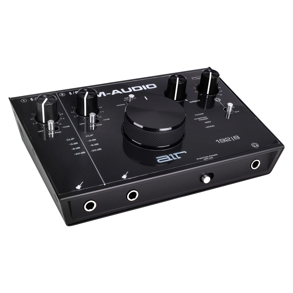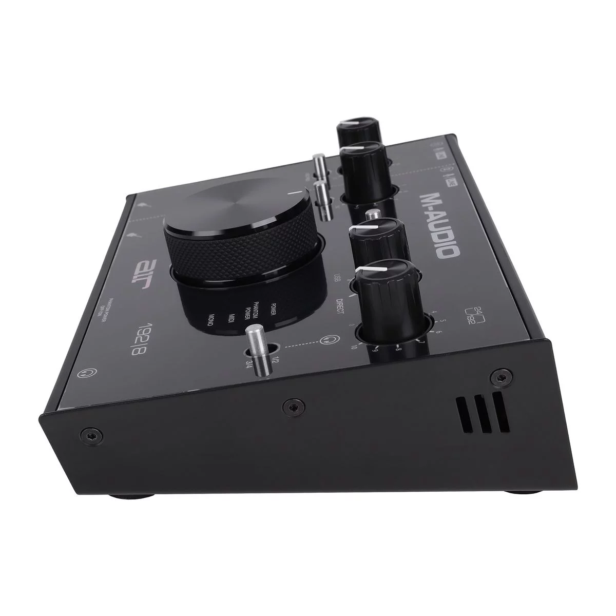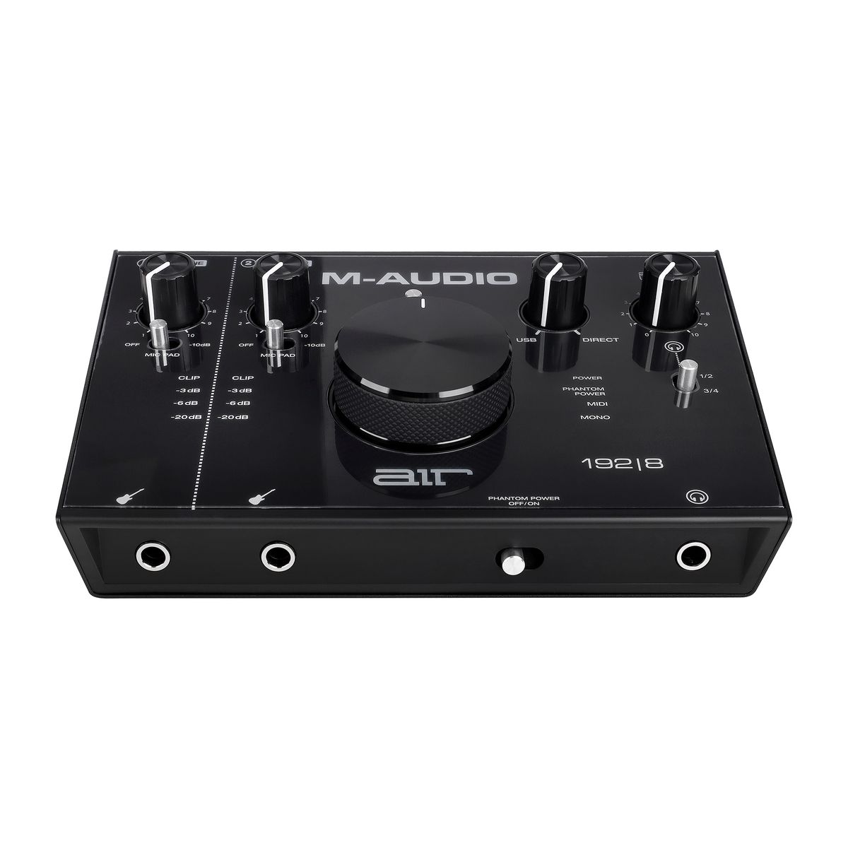 M-Audio AIR 192 | 8 - компактный USB-аудиоинтерфейс, оснащенный двумя входами и четырьмя выходами. Интерфейс имеет разрешение 24 бит / 192 кГц для профессиональной записи и мониторинга. Высокоскоростной тракт USB служит для быстрого соединения с минимальной в своем классе задержкой 2,59 мс на передачу данных в оба направления. Предусилители CrystalTM обеспечивают максимальную прозрачность звучания. Устройство имеет гибкие возможности подключения: 2 комбинированных входа XLR/TRS с кнопкой -10 дБ для микрофона или инструментов. Используйте любую комбинацию входов на двух каналах: пара XLR/TRS, пара инструментальных либо по одному каждого типа. Имеется MIDI-вход/выход для подключения практически любого внешнего MIDI-оборудования. На задней панели расположены стерео 1/4 дюймовые TRS и RCA выходы с переключателем моно/стерео и 2 назначаемых вспомогательных выхода RCA. Также имеется выход для наушников TRS 1/4 дюйма c переключением источника и регулятором уровня громкости. Интерфейс имеет прочный металлический корпус и снабжен большой ручкой для легкой регулировки громкости. Также имеется ручка USB/Direct для изменения баланса между входным сигналом и сигналом компьютера. В комплект поставки входит также кабель USB-C на С, кабель USB-C на A, два 1/8" MIDI-адаптера и адаптер питания. В комплект также входит сборник ПО, включающий Pro Tools First, Ableton Eleven Lite, 20 Avid Effects, Vacuum и Boom.