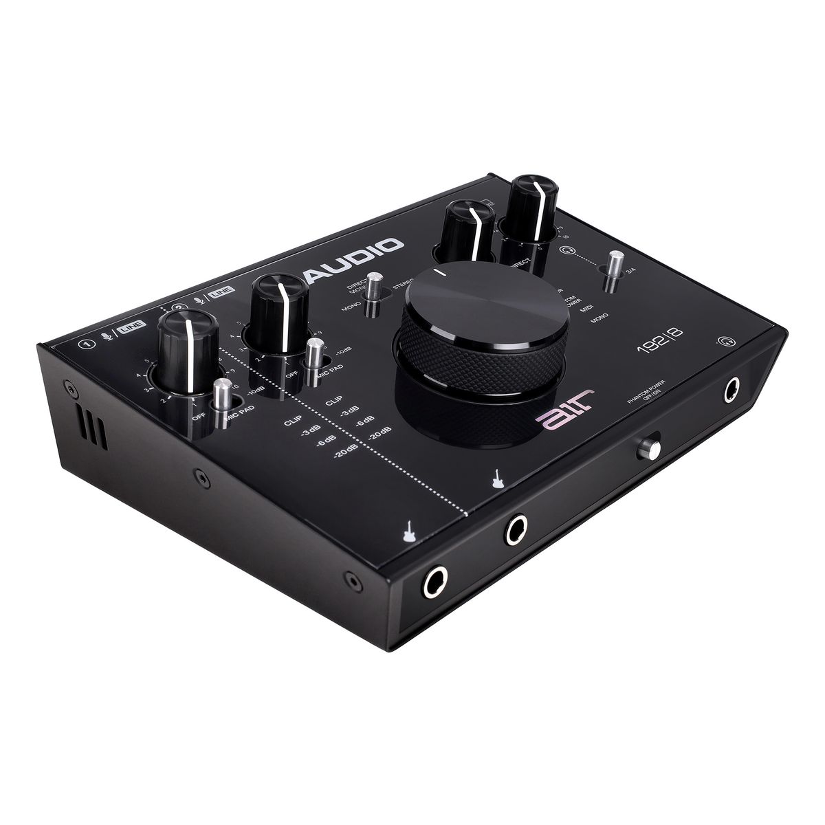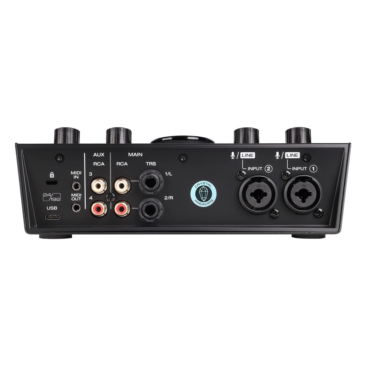 Разъемы: 2 x XLR / TRS вход, 1x1/4-дюймовый инструментальный вход, 2x стерео 1/4-дюймовых TRS выхода