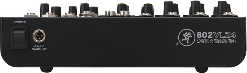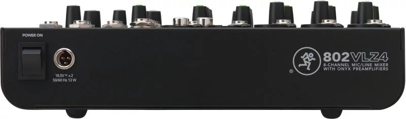 Аналоговый микшер MACKIE 802 VLZ 4 выдержан в фирменном стиле производителя, это прочный стальной корпус, качественные, светло-серые ручки настроек и оригинальный, современный дизайн. Ручки настроек выполнены с использованием контрастной краски, что позволяет использовать микшер даже в помещении со слабым освещением. Адаптер питания микшера внешний. Подключение адаптера происходит через разьем на внешней верхней панели, что позволяет микшеру использовать минимум места при стационарной установке. Производитель оборудовал микшер тремя микрофонными входами с разьемами XLR, один из которых может работать в стерео режиме при подключении цифровых синтезаторов или фортепиано. Три стереоканала микшера оборудованы стандартными разьемами 1\4 Jack.