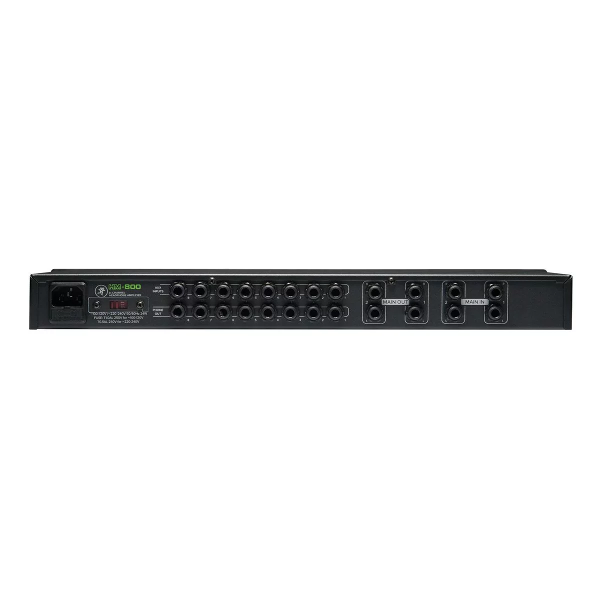 Mackie HM-800 оснащен main-входами и выходами, есть восемь AUX-входов. Всего предусилитель имеет 16 выходов для подключения наушников.
