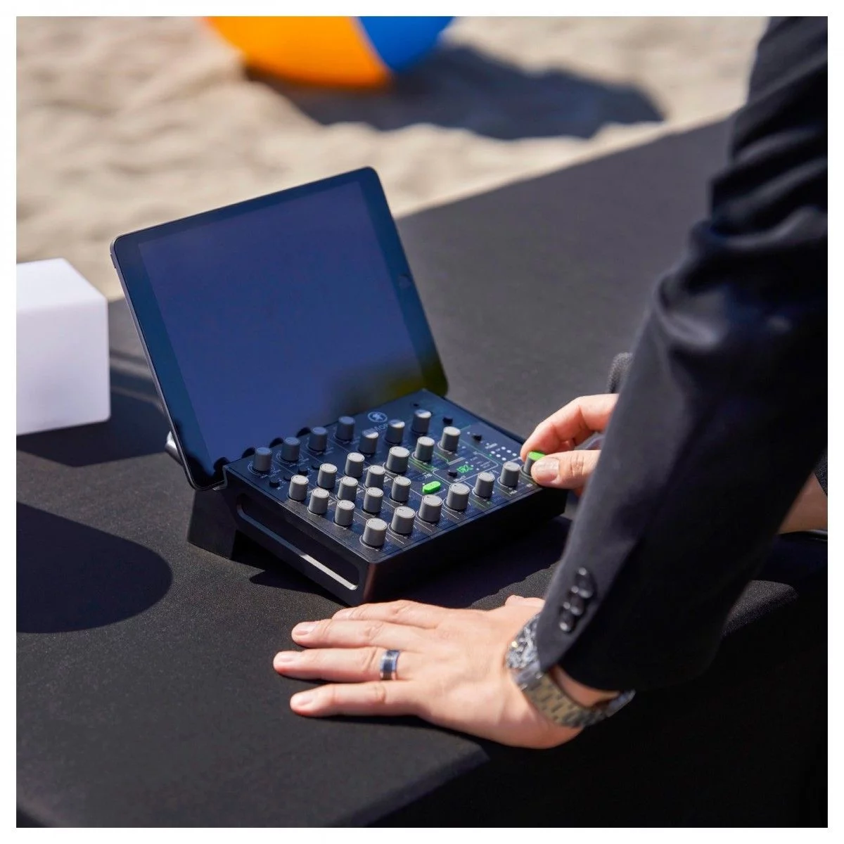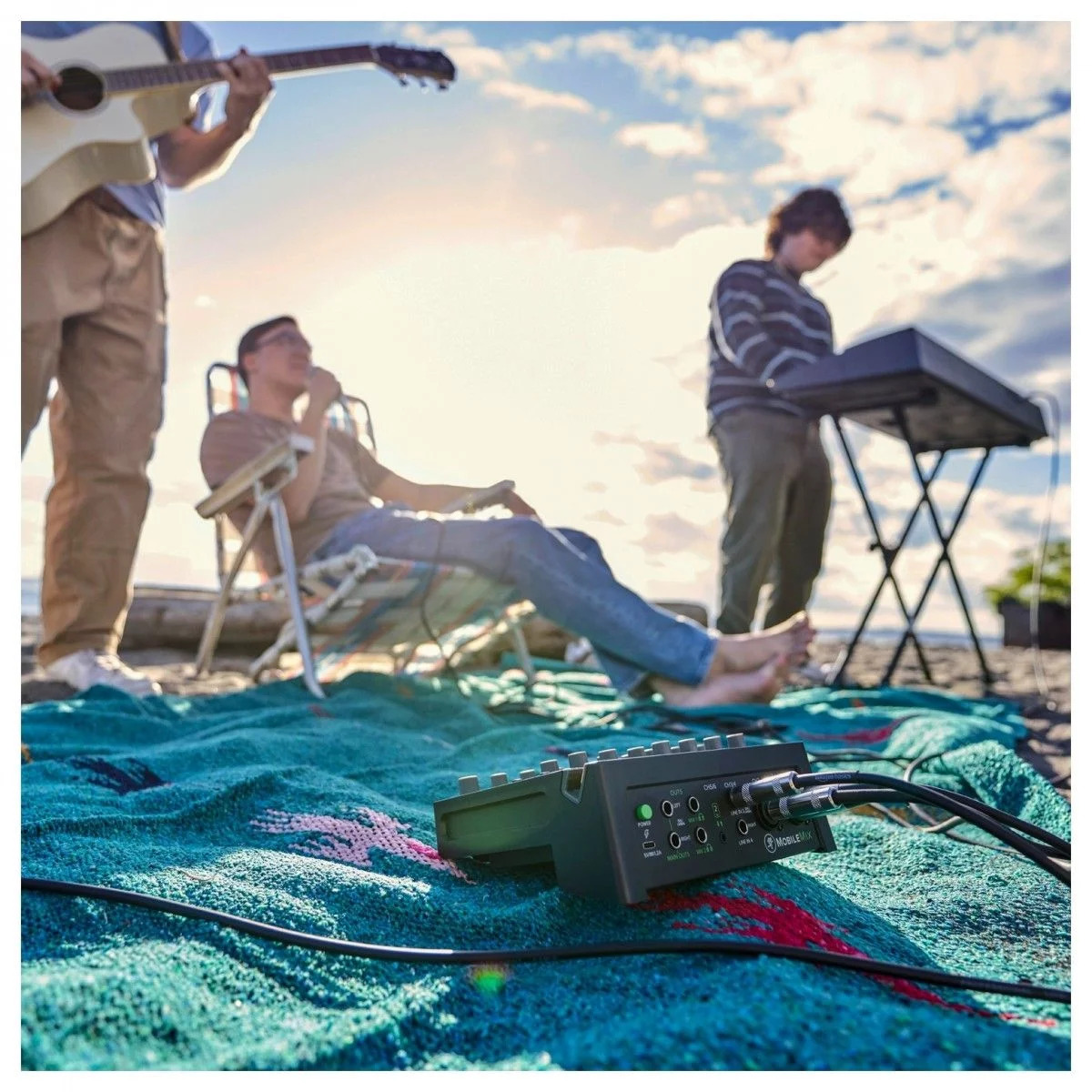 Mackie MobileMix - 8-канальный микшер с питанием от USB для аудио-видео производства, живого звука и стриминга. MobileMix - это самый простой способ получить легендарный звук Mackie в любой ситуации: полнофункциональный компактный аудиомикшер с питанием от USB или перезаряжаемого блока питания USB (не входит в комплект). MACKIE MobileMix питается от USB, предоставляя вам бесчисленные возможности для работы со звуком без привязки к розеткам. Используйте перезаряжаемый USB-аккумулятор (продается отдельно) того же типа, который вы используете для своего смартфона или камеры. MobileMix имеет скрытый батарейный отсек снизу, предназначенный для установки большинства внешних аккумуляторов, что превращает MobileMix в полноценный микшерный пульт с автономным питанием. Подключайте сразу два смартфона или две камеры одновременно через соединения TRRS, чтобы передавать и принимать звук с обоих устройств, а также подключайте внешние устройства, такие как микшерные пульты, ноутбуки, гитары, клавишные и многое другое, используя линейный входной стереофонический канал TRS. Благодаря возможности беспроводной передачи и приема звука по каналу Bluetooth, MACKIE MobileMix может выполнять такие впечатляющие функции, как потоковая передача музыки с одного устройства во время записи на другое или одновременная запись двух собеседников во время телефонного разговора с помощью функции Mix Minus, которая позволяет избавиться от эха, которое в обычных условиях делает это невозможным. MobileMix сочетает в себе легендарное качество сборки и превосходный звук, благодаря которым Mackie доверяют во всем мире. Два полнофункциональных канала микрофонного предусилителя с комбинированными разъемами XLR и 1/4 дюйма, переключатели импеданса Hi-Z для электрогитар и других пассивных инструментов, фильтры низких частот и фантомное питанием 48 В для конденсаторных микрофонов. Даже во время прямой трансляции MobileMix позволяет вам на лету захватывать и микшировать весь ваш звук в единое, четкое и впечатляющее произведение с помощью эквалайзера, а встроенные эффекты украсят ваш голос или инструмент.