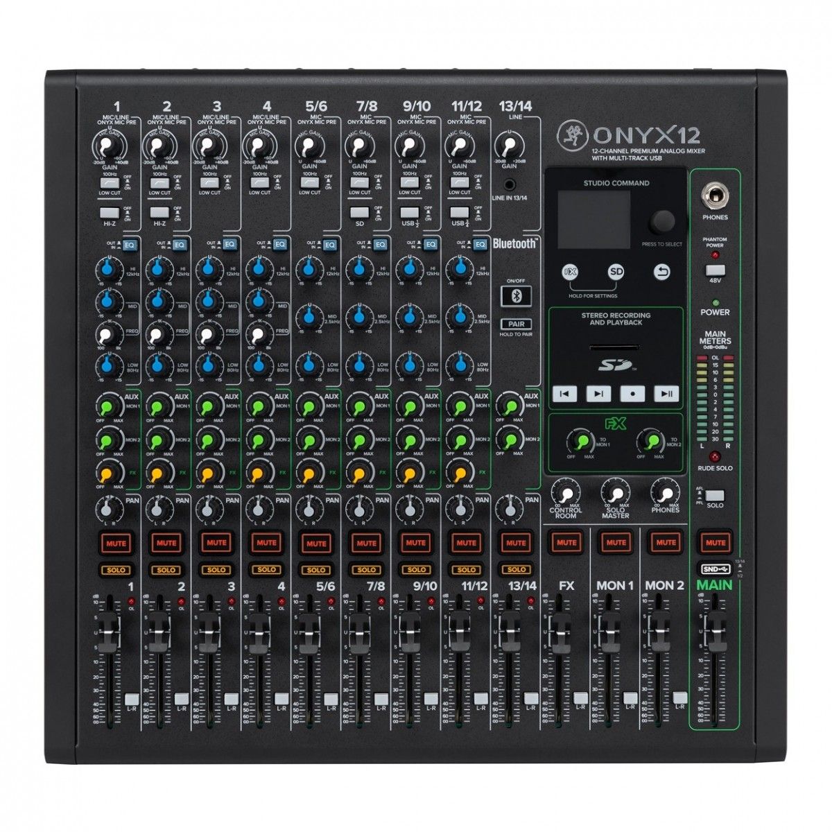 Простота управления и гибкость Onyx12 Studio Command: интерфейс с цветным дисплеем и удобной ручкой для управления встроенным FX-процессором и файлами на SD карте (просмотр/запись/воспроизведение)