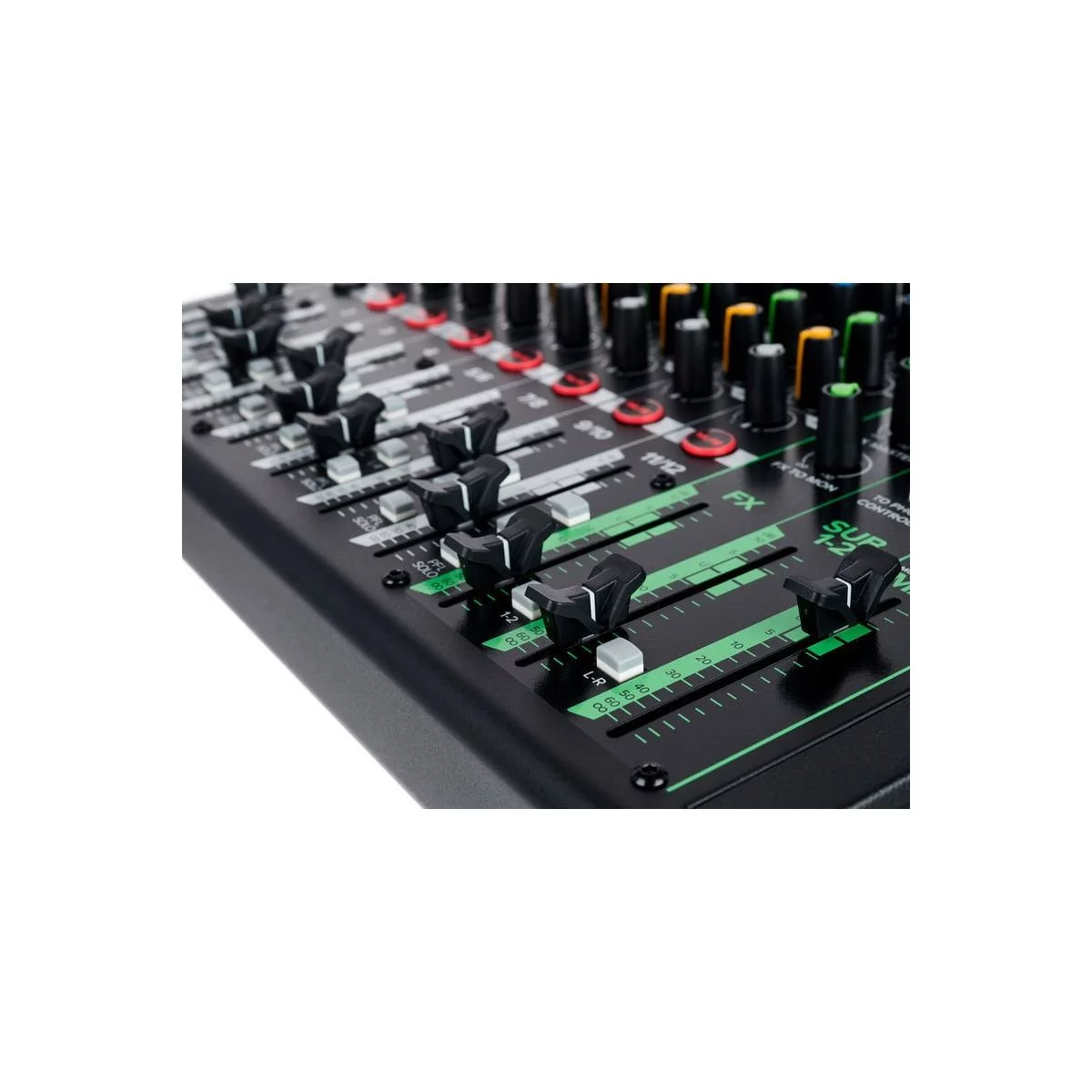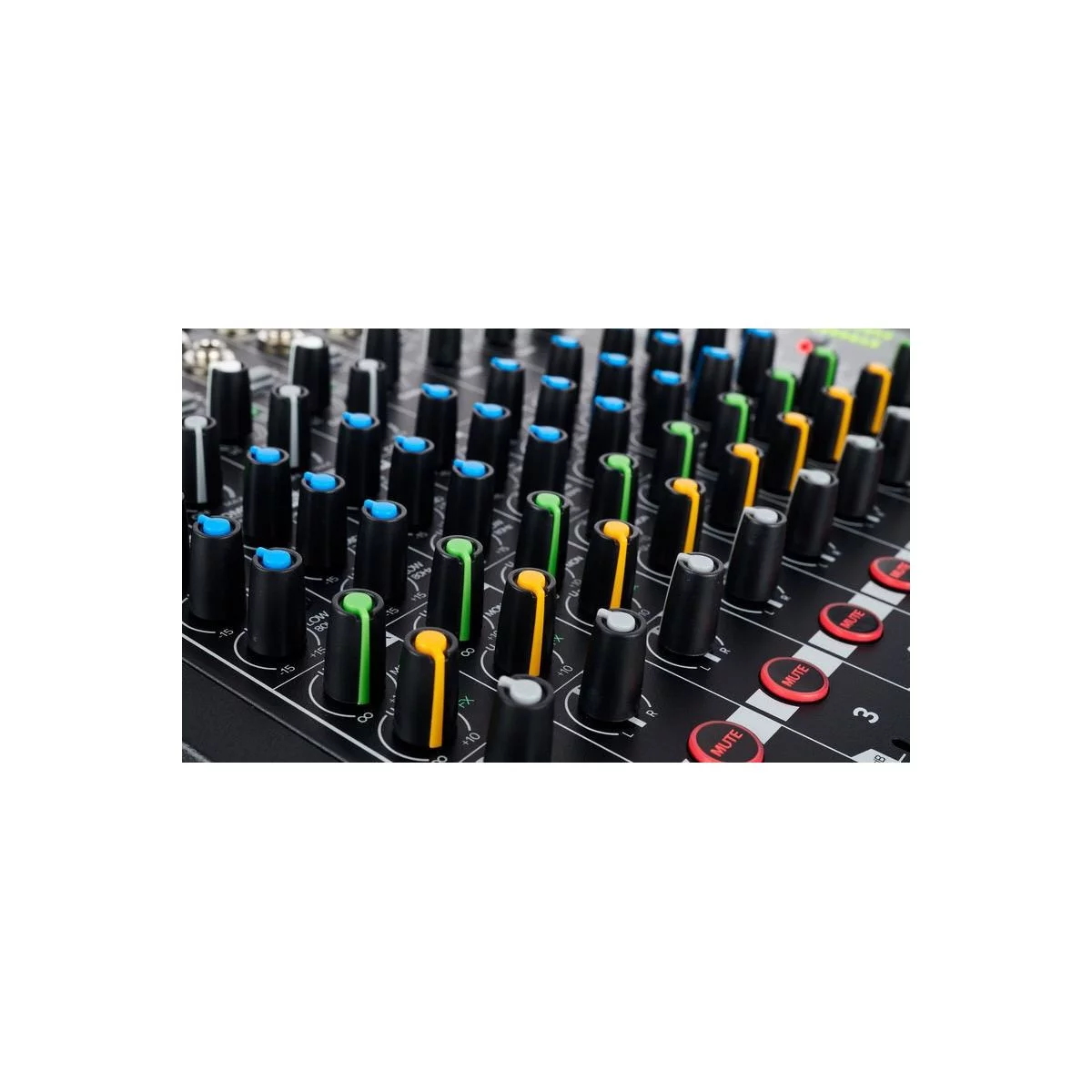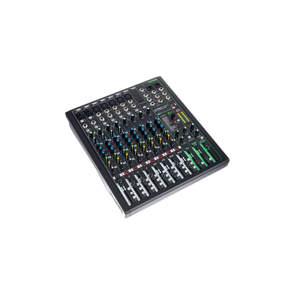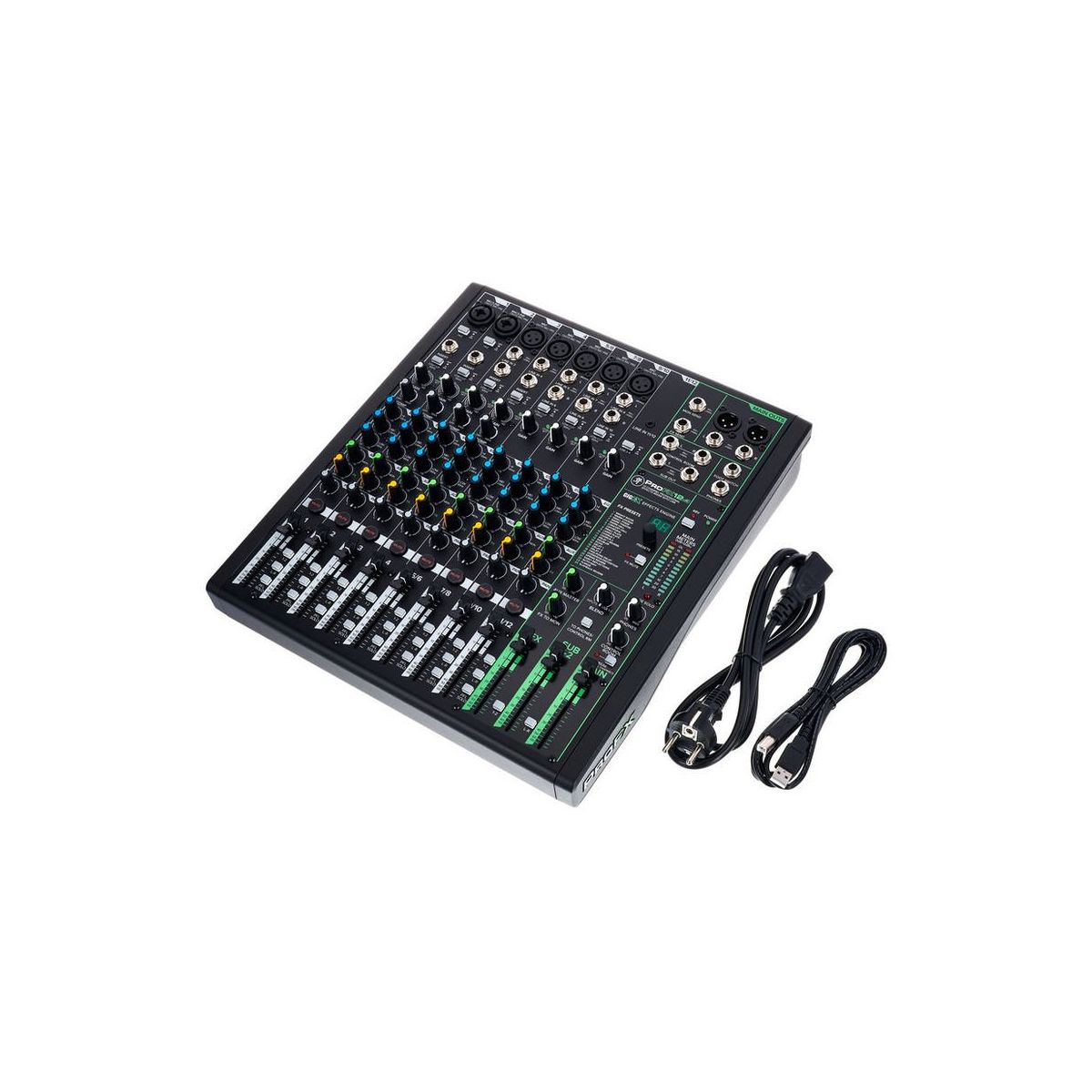 Mackie ProFX12v3 - 12-канальный микшер с интегрированным USB-аудиоинтерфейсом и процессором эффектов. Подходит для живого сведения и домашней звукозаписи. Микрофонные каналы оборудованы предусилителями Onyx. Пульт оборудован процессором эффектов GigFX с 24 типами пространственной обработки звука. Возможен посыл двух миксов с компьютера на микшер. Для мониторинга без задержки доступна функция Blend, которая позволяет регулировать баланс между прямым сигналом с пульта и выходным сигналом из DAW. Кроме того, доступна функция single-knob compression. USB-интерфейс обеспечивает запись в формате 24 бит/192 КГц. Достигается нулевой уровень задержки при мониторинге. На каждом канале доступны переключатели Hi-Z, которые позволяют включать инструменты напрямую. Также на всех микрофонных каналах есть подведенное фантомное питание и интегрированный low-cut фильтр (100 Гц). В комплекте с пультом поставляется ПО ProTools | First и Waveform OEM, а также библиотека плагинов под эти платформы.