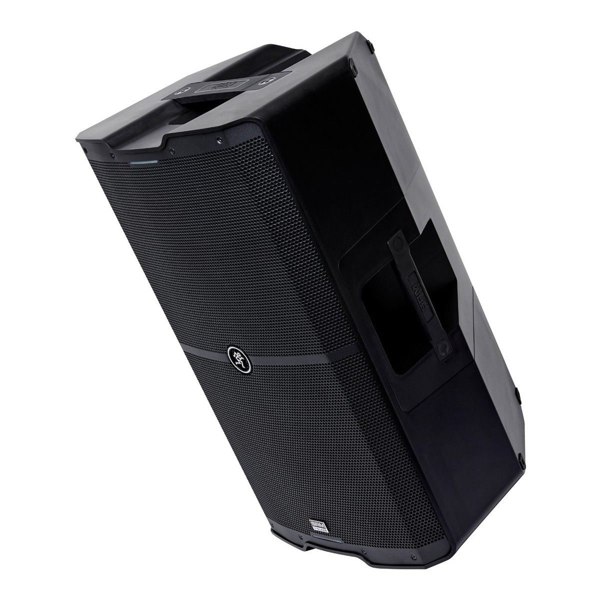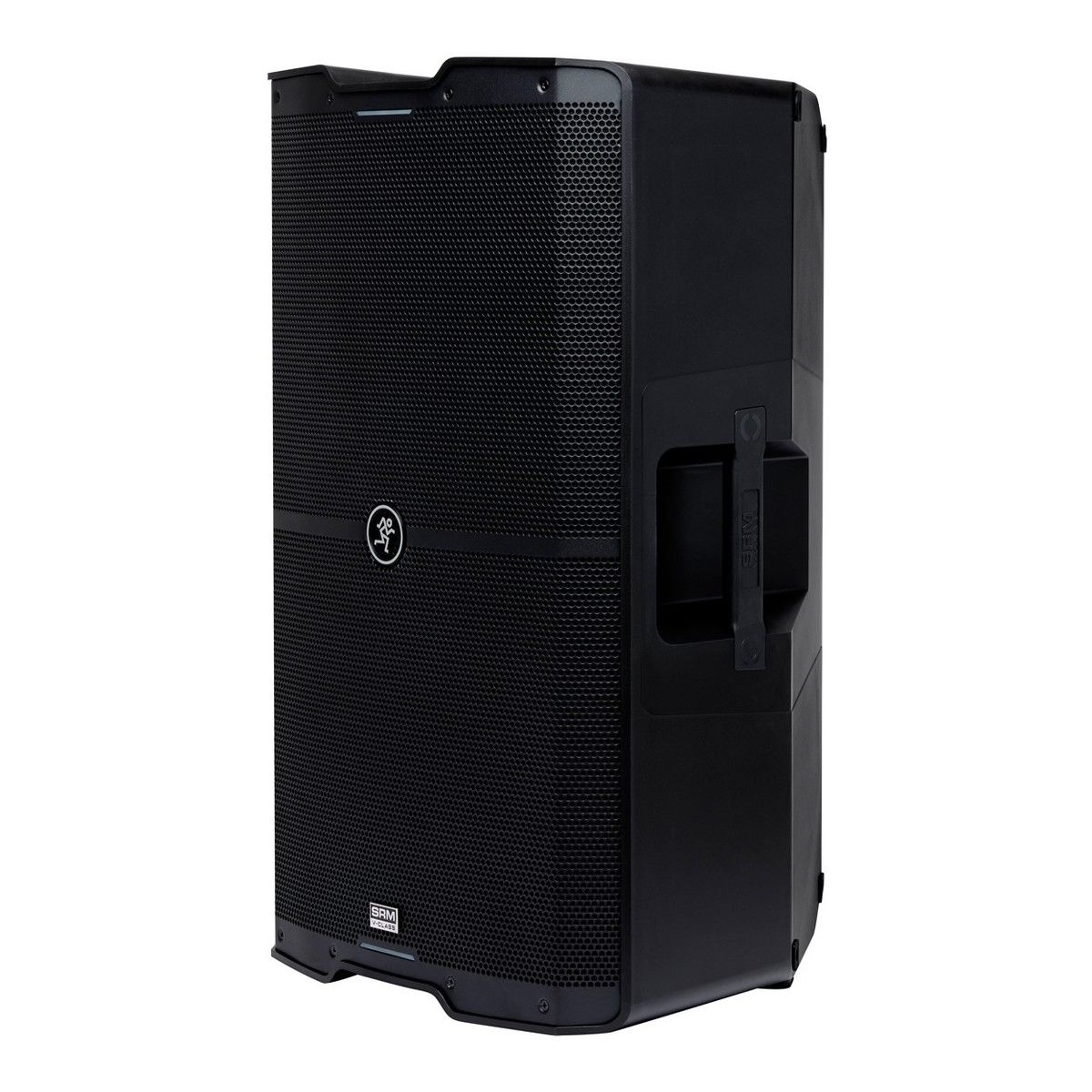 Активная акустическая система Mackie SRM215 V-Class выполнена в прочном и достаточно легком корпусе из полипропилена. Гриль сделан из стали и покрыт порошковой краской. На верхней части конструкции есть две точки M10 для вертикального подвеса, а для установки на стойку есть два стакана с резьбой M20: под 0 и 7 градусов наклона. Для удобной транспортировки есть две рукоятки сбоку и одна ручка сверху корпуса. Опционально можно приобрести стойку-треногу T100, стойку для сателлита SMP400, а также комплект рым-болтов PA-A2.