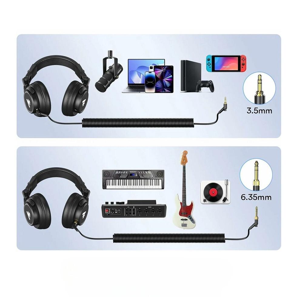 Кабель с разъемом “миниджек” TRS 3,5 мм. является съемным и имеет длину 3 метра. В комплекте также поставляется переходник на TRS джек 6,35 мм.