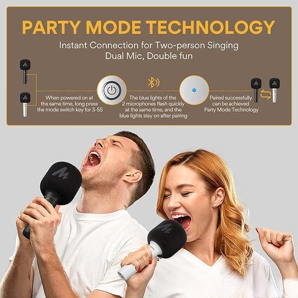 MKP100 это караоке микрофон нового поколения от Maono. Хотите ли вы петь караоке в машине, провести вечер в кругу семьи, порадовать детей подарком или устроить вечеринку с друзьями – MKP100 сможет украсить ваш досуг.