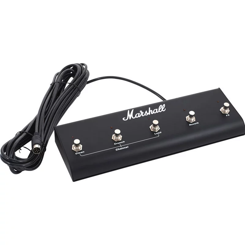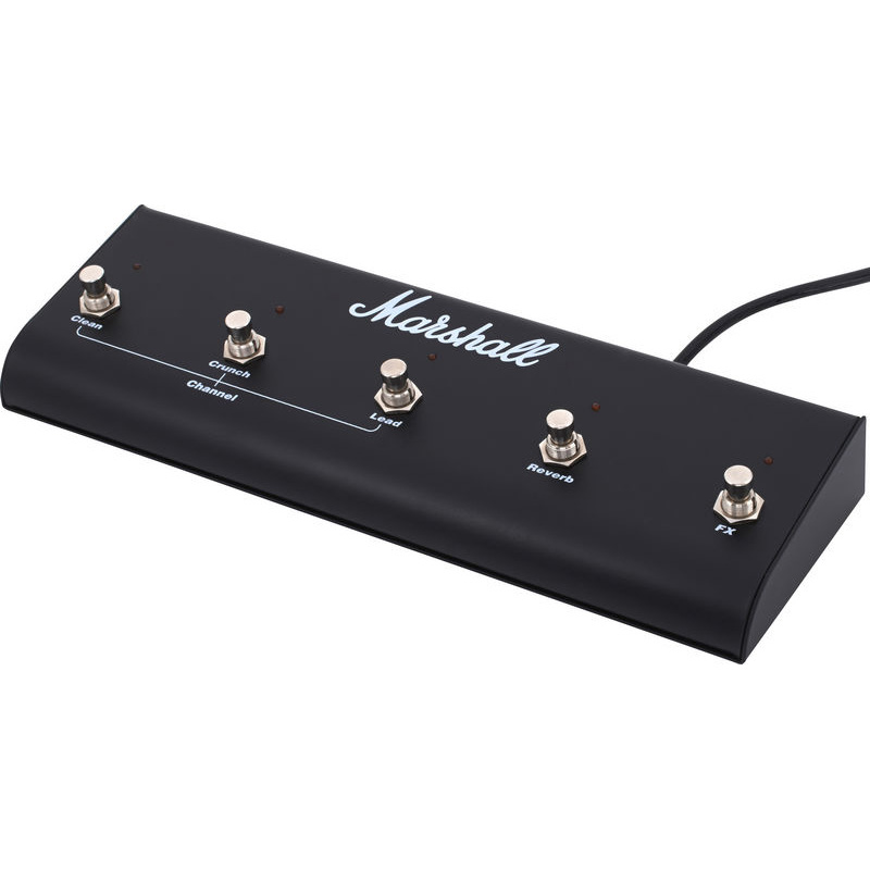 Ножной контроллер Marshall PEDL-10021 5-way LED создан для облегчения работы с усилителями Marshall из серии TSL Series. С его помощью вы сможете удаленно переключаться между каналами, а также включать и выключать реверберацию и петлю эффектов. ДЛч вашего удобства переключатель оборудован пятью кнопками: Clean, Crunch, Lead, Reverb и FX. Для работы в условиях с плохой освещенностью ножной переключатель снабжен яркими светодиодными индикаторами. Обратите внимание, некоторые усилители Marshall уже продаются в комплекте с футсвитчами.