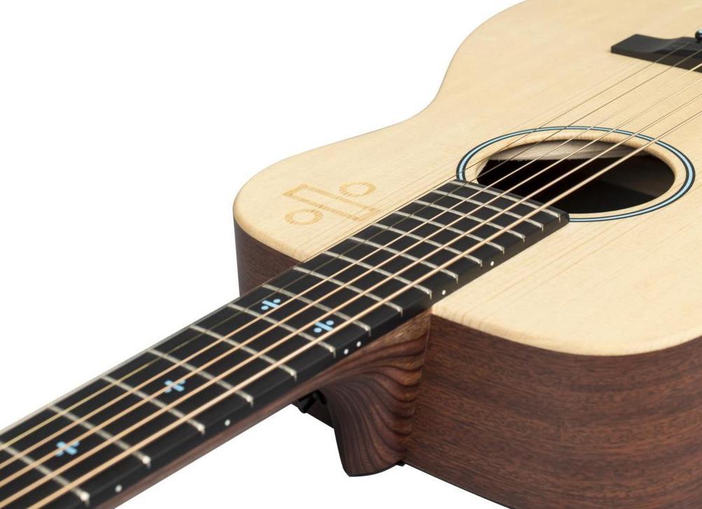 Гитара оборудована электроникой Fishman Sonitone с регуляторами, расположенными в резонаторном отверстии, что позволило сохранить акустический обьём корпуса замкнутым, а обечайку однородной.