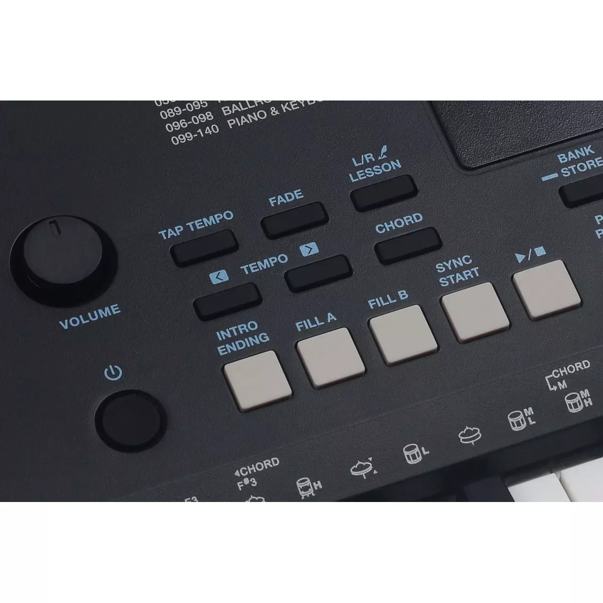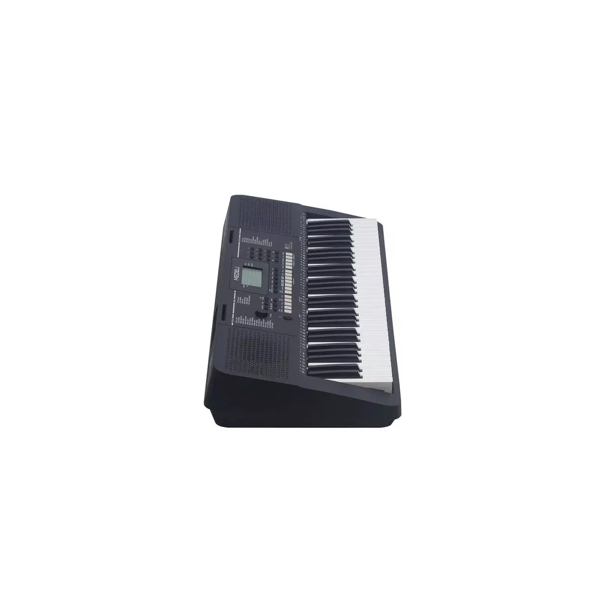 Инструмент оснащен 61-клавишной клавиатурой фортепианного типа, чувствительной к касанию, секцией автоаккомпанемента и может работать как от адаптера, так и от батареек. Для удобства предусмотрен экран со стильной светло-голубой подсветкой, а ориентироваться в функциях помогает улучшенное управление с выделенными кнопками управления стилями и памятью. Полифония в 64 голоса позволяет уверенно играть насыщенные аккорды, а встроенная акустика с динамиками 2 × 12 см передает звучание громко и разборчиво.