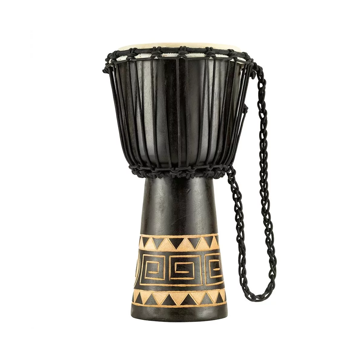Эти джембе вырезаны из массива махогани: выращенного на специальных плантациях и имеют традиционную для Мали систему веревочной настройки мембраны.