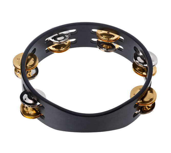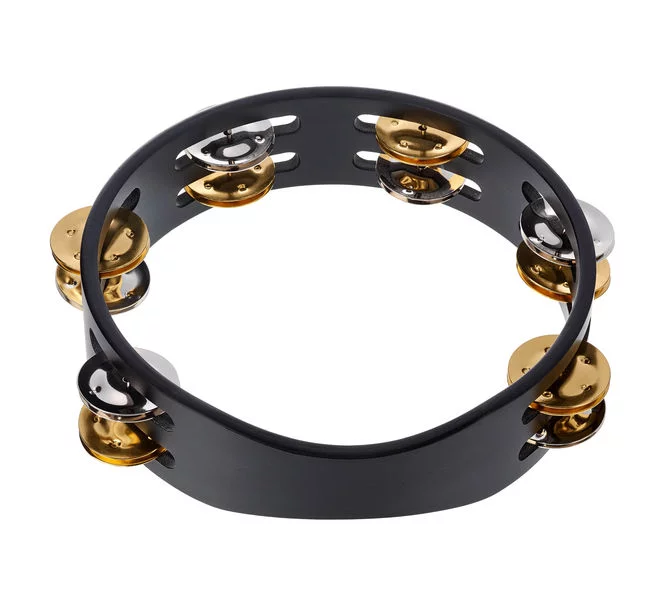 Тамбурин деревянный двухрядный 8", сталь, латунь, цвет чёрный.