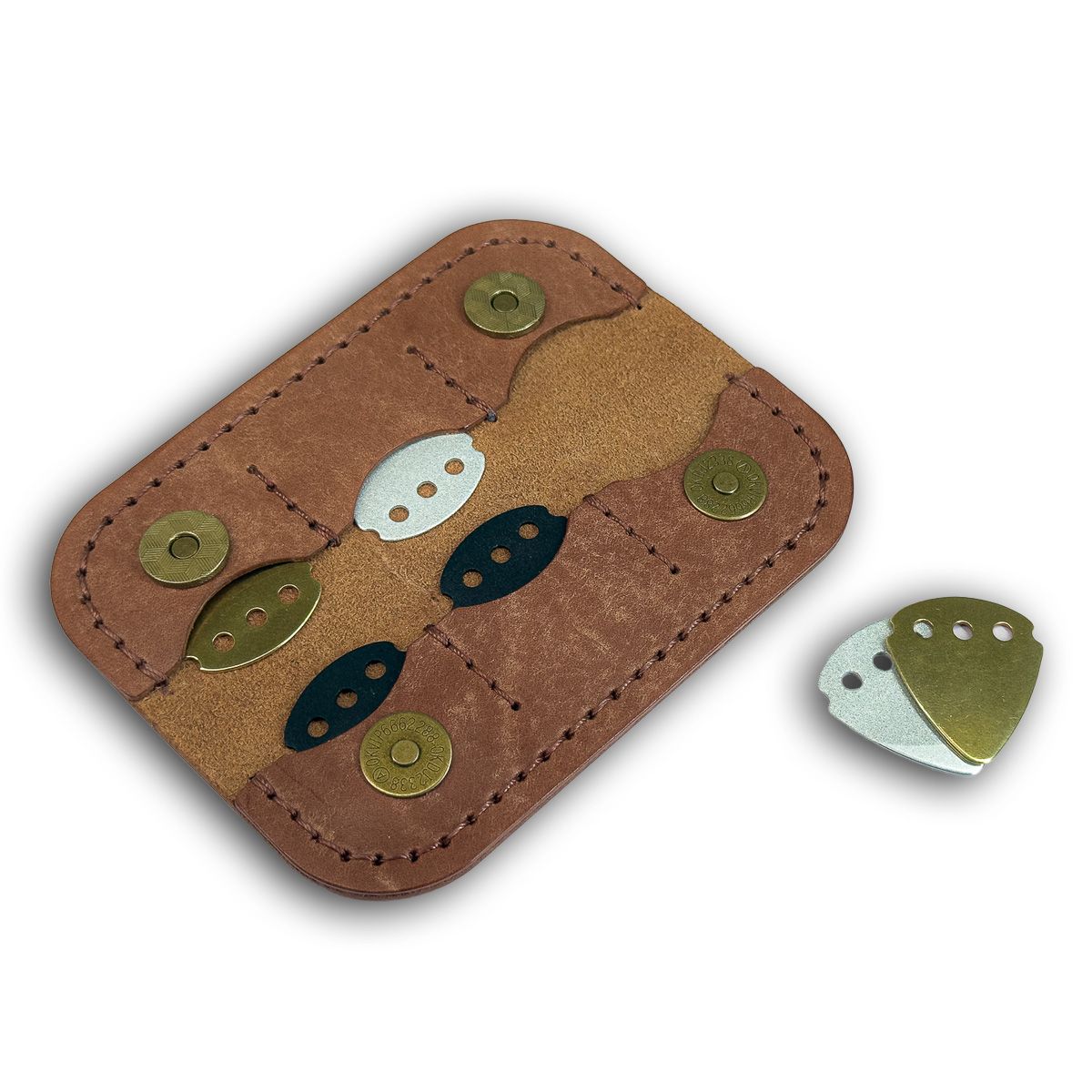 Органайзер для медиаторов. Изготовлен из высококачественной итальянской кожи. Ручная работа. Вместимость от 6 до 12шт. Магнитные кнопки. Цвет виски.