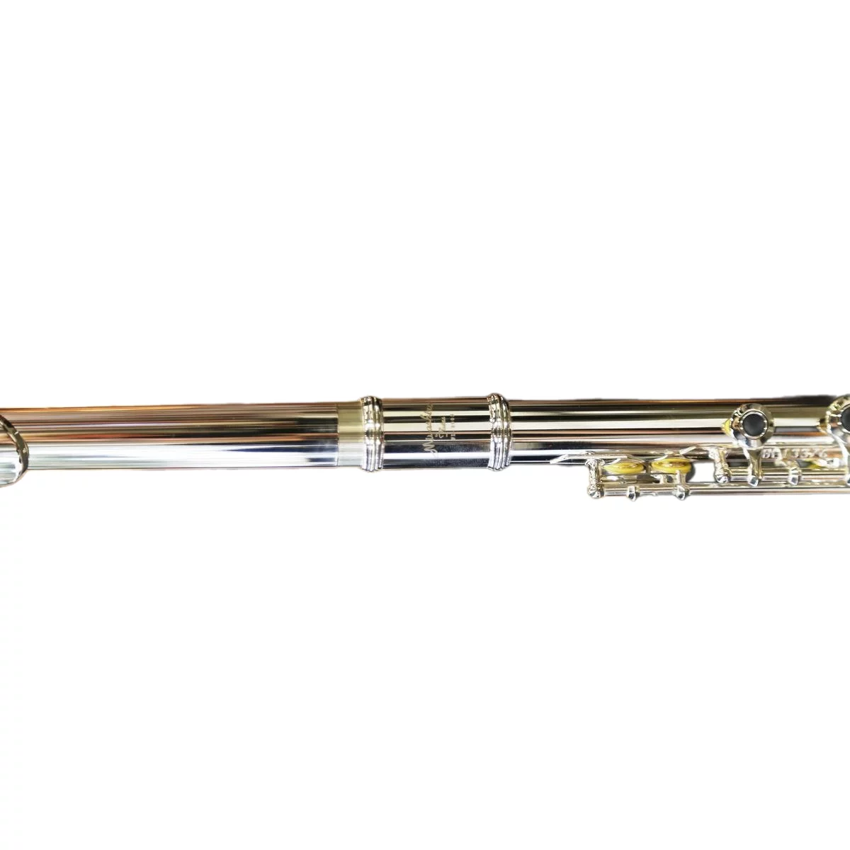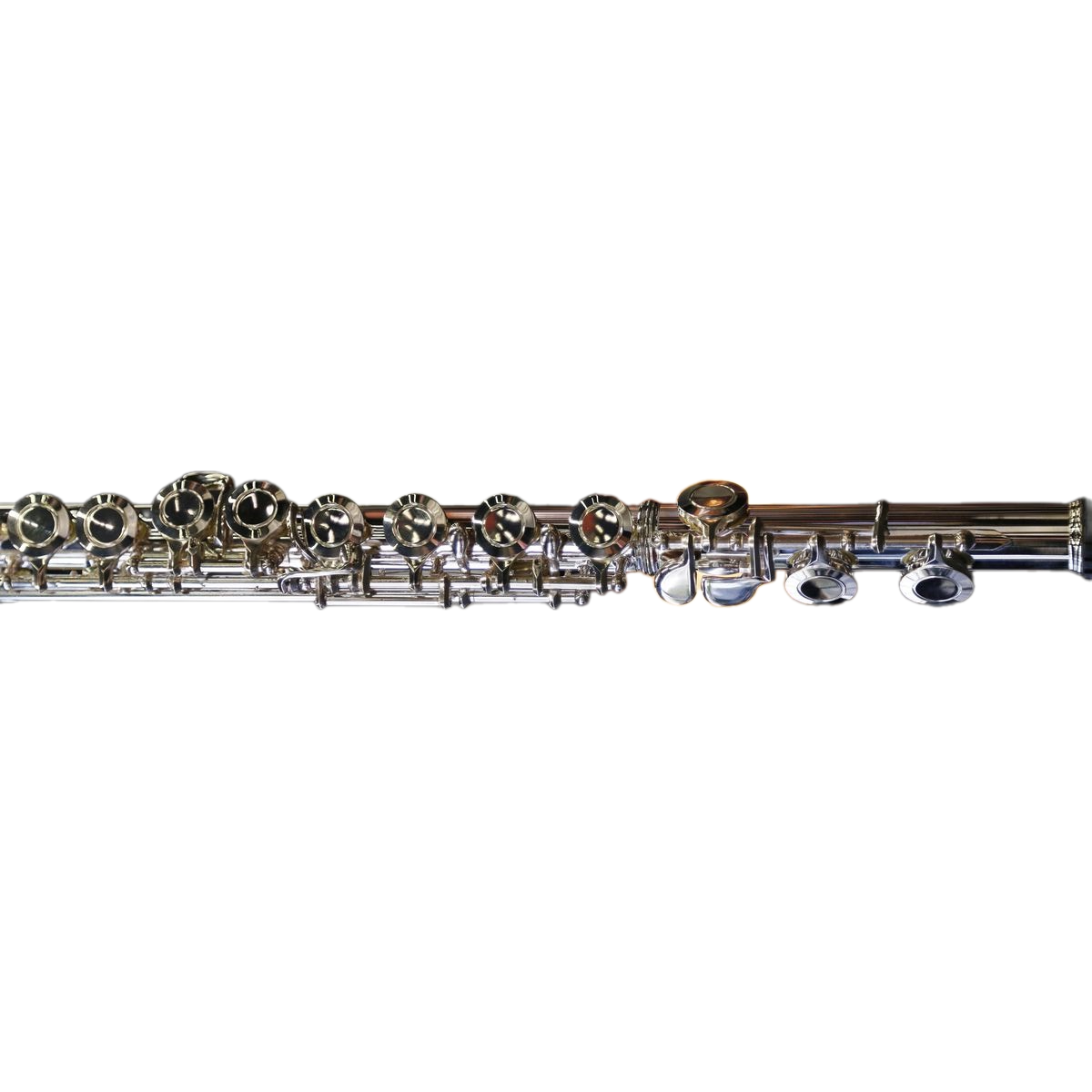Флейта ученическая c "E-механикой", без резонаторов, не в линию, серебряное покрытие. Корпус-мельхиор, литые клапана, улучшенный футляр из искусственной кожи.