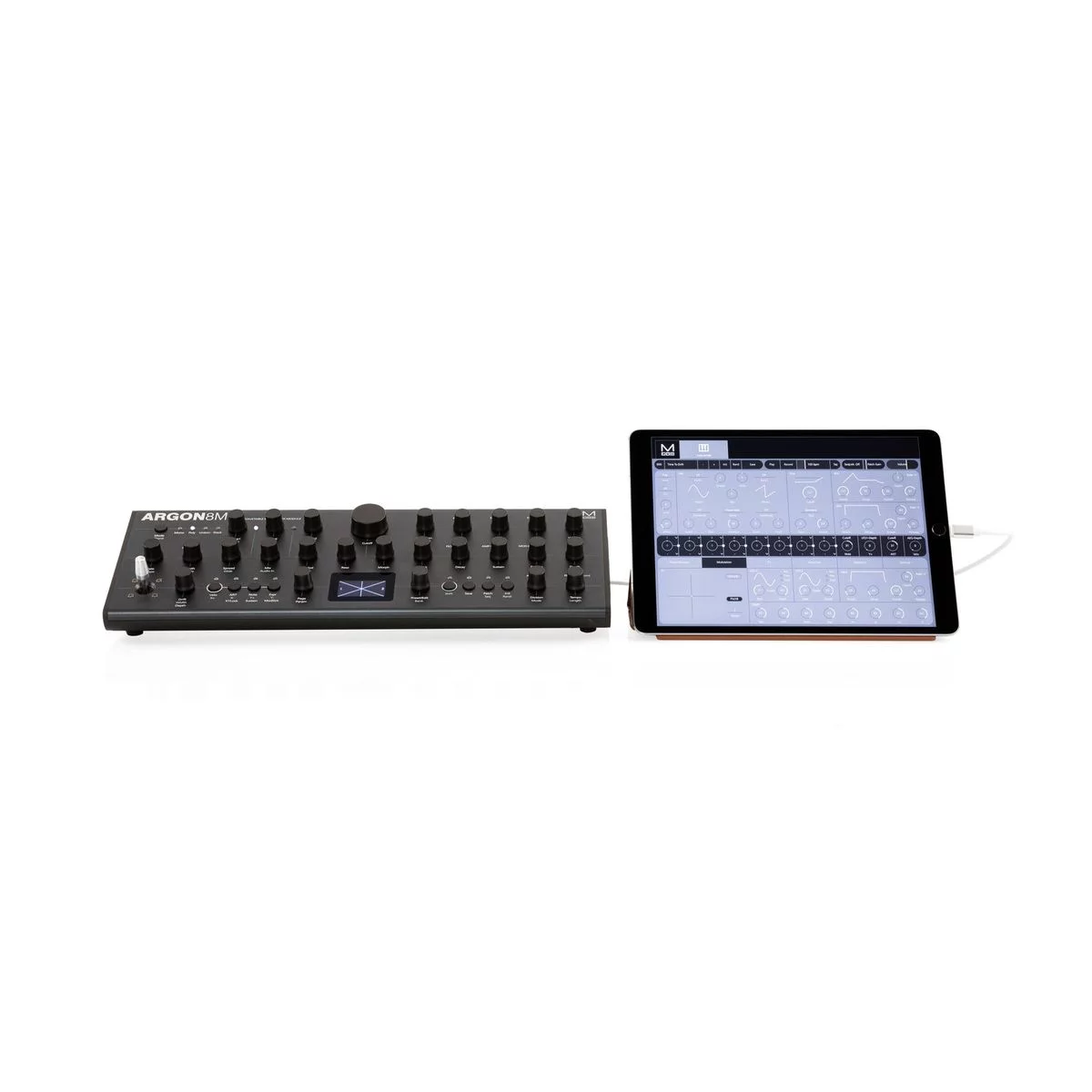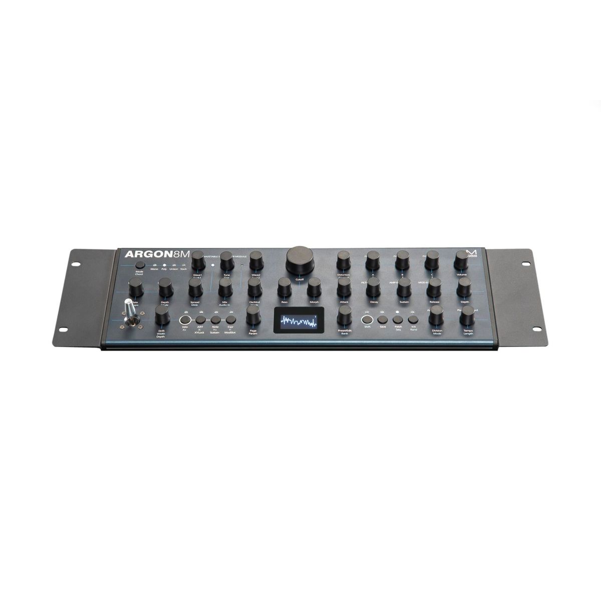 Настольный дизайн подходит для любого рабочего места. Входящие в комплект крепления позволяют установить ARGON8M в стойку для концертов или студий. Для прямого доступа к параметрам ARGON8M оснащен 13 переключаемыми кодерами, 13 кодерами, 9 кнопками и джойстиком X/Y для регулировки высоты тона и модуляции.