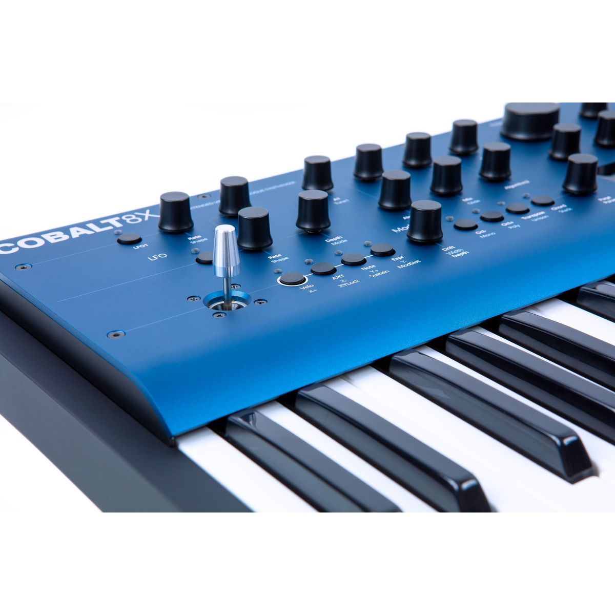 Профессиональным клавишникам понравится прочный корпус COBALT8X из стали и алюминия и высококачественная полноразмерная клавиатура FATAR с 61 клавишами. Для прямого доступа к параметрам COBALT8X оснащен 29 бесконечными кодерами, 24 кнопками и джойстиком X/Y для регулировки высоты звука или модуляции, а поддержка MPE открывает новые возможности творческого самовыражения для искушенных исполнителей.