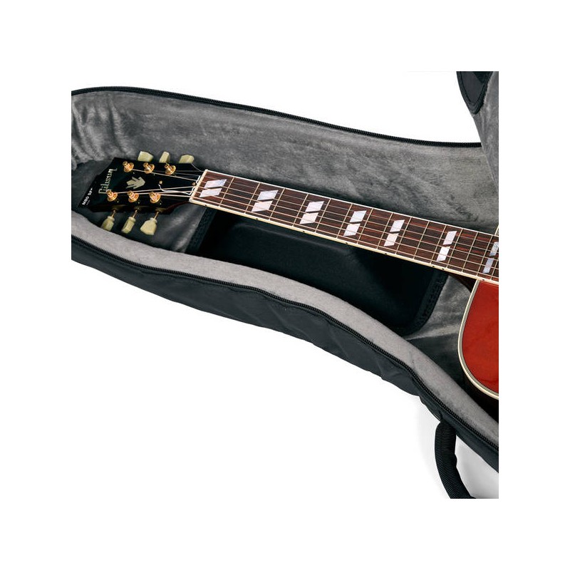 Гибкая «крышка» чехла и профиль молнии позволяют легко и просто вынимать или класть гитару в чехол в вертикальном положении без необходимости целиком «распахивать» кейсю