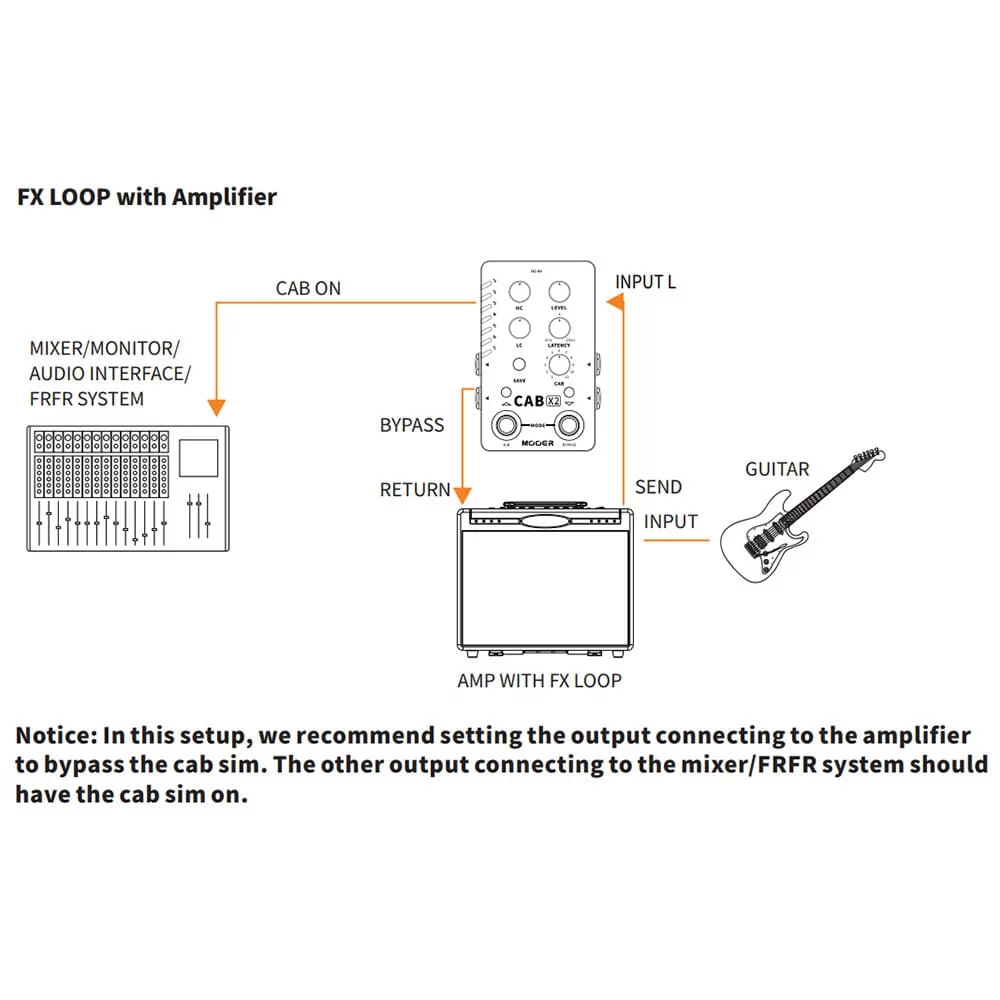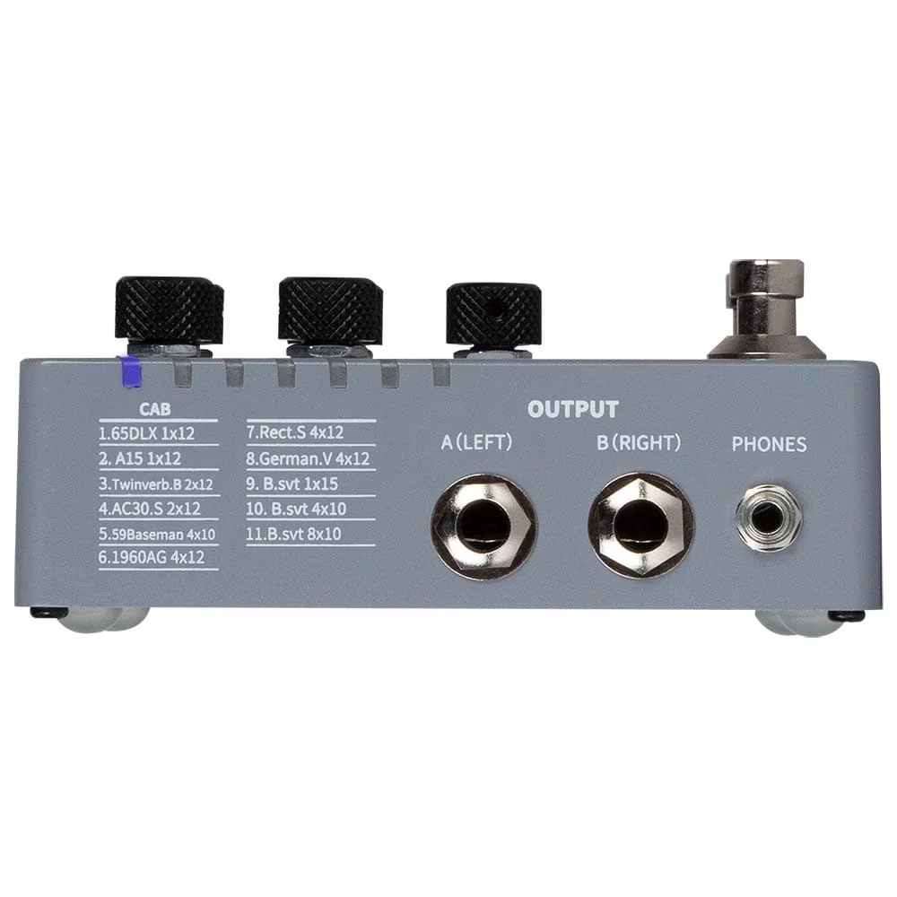 - Режим байпасса позволяет подключаеть педалборд к гитарному усилителю без необходимости физически выключать Cab X2 из тракта.