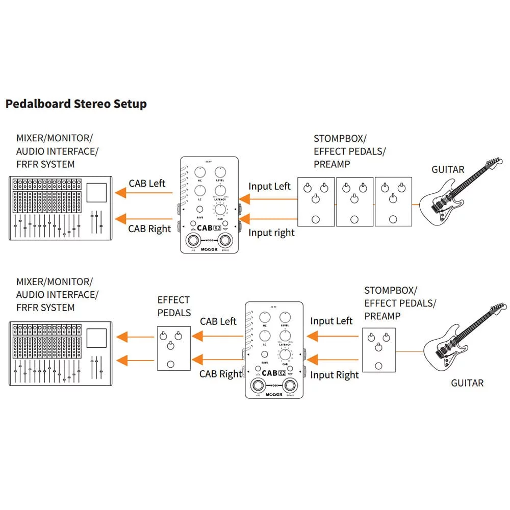Mooer Cab X2 - компактная и очень функциональная педаль эмуляции кабинетов, легко адаптируемая под различные конфигурации концертной или студийной работы, а также позволяющая музицировать через свой педалборд дома в наушниках.