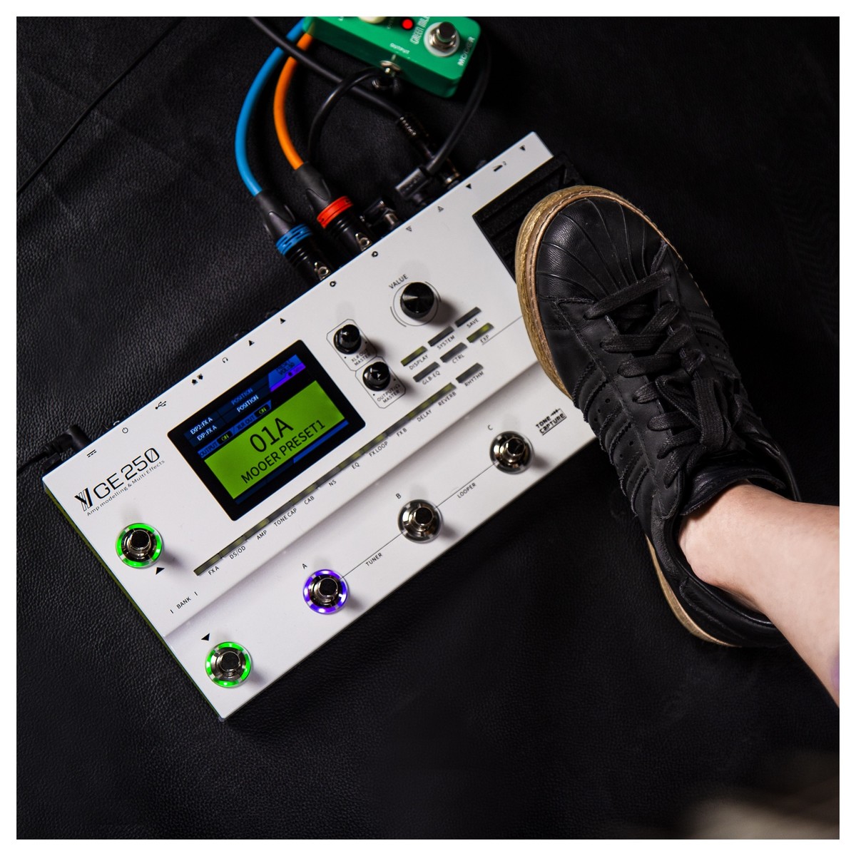 Процессор MOOER GE250 заполняет по цене и функциональности нишу между популярными GE200 и GE300.