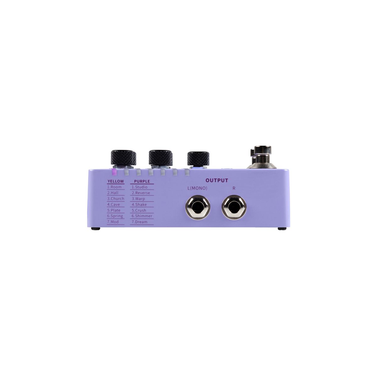 Две кнопки работают либо в режиме перелистывания пресетов, либо как удержание реверберации без затухания (Infinite) и включение/выключение эффекта соответственно.