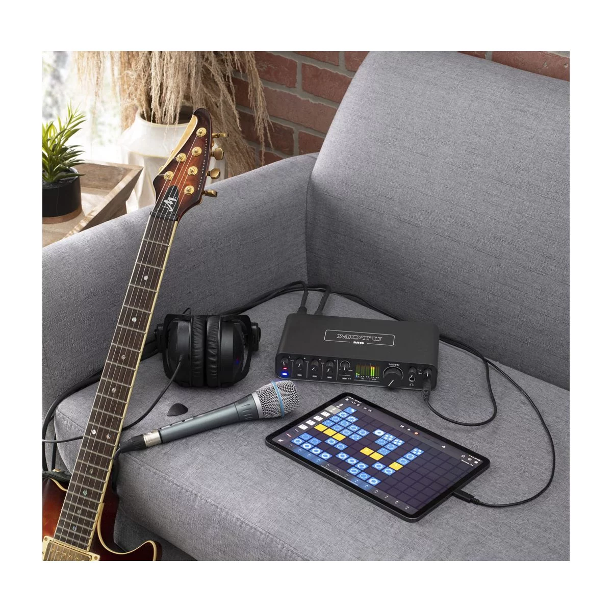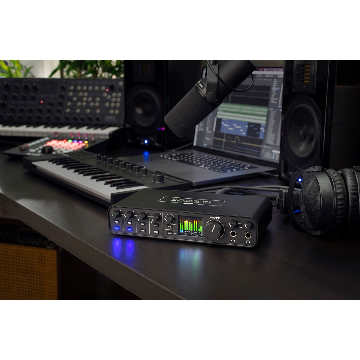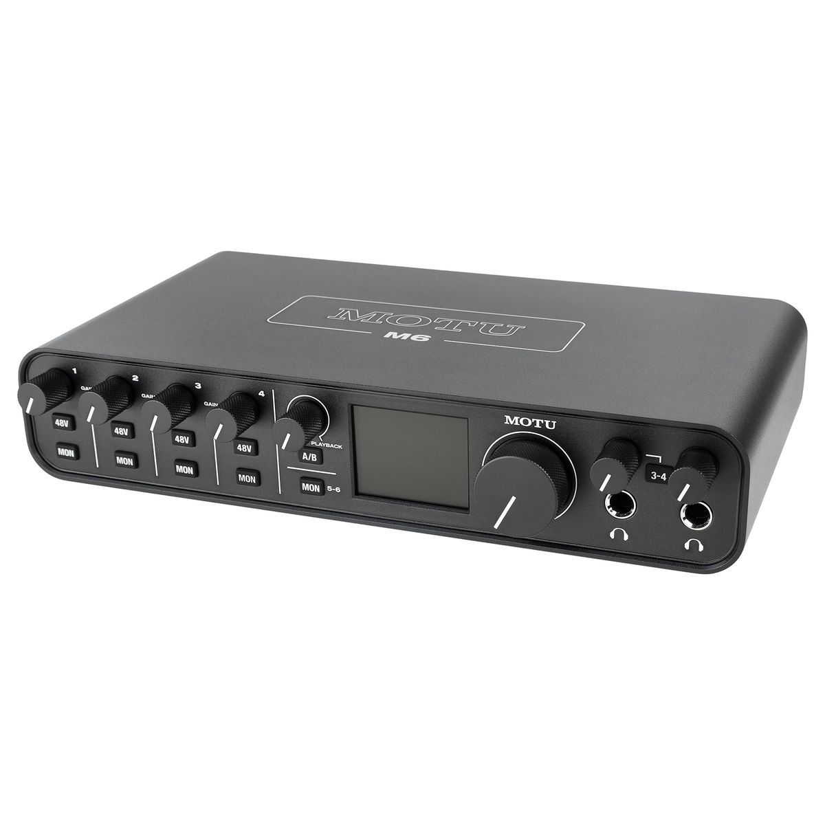 MOTU M6 - аудиоинтерфейс с четырьмя микрофонными входами, двумя выходами на наушники и отдельным каналом лупбэка. Модель оснащается разъёмом USB-C для подключения к компьютеру и предусилителями ESS Sabre32 Ultra, и способен записывать сигнал с частотой дискретизации до 192 кГц и разрядностью до 32 бит. Интерфейс предлагает шесть входов: четыре комбинированных микрофонных/линейных/инструментальных входа на разъёмах XLR/TRS и два линейных TRS. Комбинированные разъёмы размещены на задней стороне корпуса. Динамический диапазон входов составляет 115 дБ, эквивалентный уровень шума — ?129 дБ. Максимальный уровень усиления составляет +60 дБ, импеданс — 2,65 кОм. Для каждого входа предусмотрена собственная схема фантомного питания, активирующаяся отдельной клавишей на фронтальной панели. Информация о состоянии сигнала на входах выводится на цветном дисплее в центре корпуса. Для подключения мониторинга предусмотрены две пары линейных выходов. Пользователи могут переключаться между ними нажатием кнопки MON, что позволяет использовать MOTU M6 как контроллер мониторов. Интерфейс также получил два выхода на наушники с собственным управлением громкостью. Первый выход повторяет сигнал на выходах 1-2 для мониторов, в то время как второй выход на наушники способен транслировать сигнал со второй пары мониторных выходов. Благодаря этому музыканты могут передавать разные версии микса на две пары наушников. Модель оснащается выходами MIDI IN/OUT на стандартных разъёмах 5-DIN и отдельным каналом лупбэка для захвата аудио внутри компьютера. Лупбэк совместим с любыми приложениями и DAW, благодаря чему MOTU M6 подходит для записи и оформления интервью, стримов и прочего подобного контента. Для подключения устройства к компьютеру предусмотрен разъём USB-C, работающий по протоколу USB 2.0. Несмотря на то, что карта поддерживает Plug-and-Play, производитель рекомендует установить отдельный пакет драйверов, распространяющийся через страницу поддержки продукта. При использовании отдельного драйвера общий показатель задержки составляет около 2,5 мс. Карта получает питание от порта USB-C или отдельного адаптера питания, входящего в комплект поставки. Адаптер питания потребуется в случаях, когда M6 подключается к хостам USB-A. MOTU M6 совместим с операционными системами Windows 10 и новее, macOS 10.13 и новее (Intel/M1). Устройство также может работать со смартфонами и планшетами на базе iOS и iPadOS. В комплект входят кабели USB-C/USB-C и USB-C/USB-A, адаптер питания и набор программного обеспечения. В списке музыкального софта — DAW MOTU Performer Lite, DAW Ableton Live Lite 11 и 6 ГБ лупов и сэмплов от Big Fish Audio, LucidSamples, Loopmasters и MOTU.