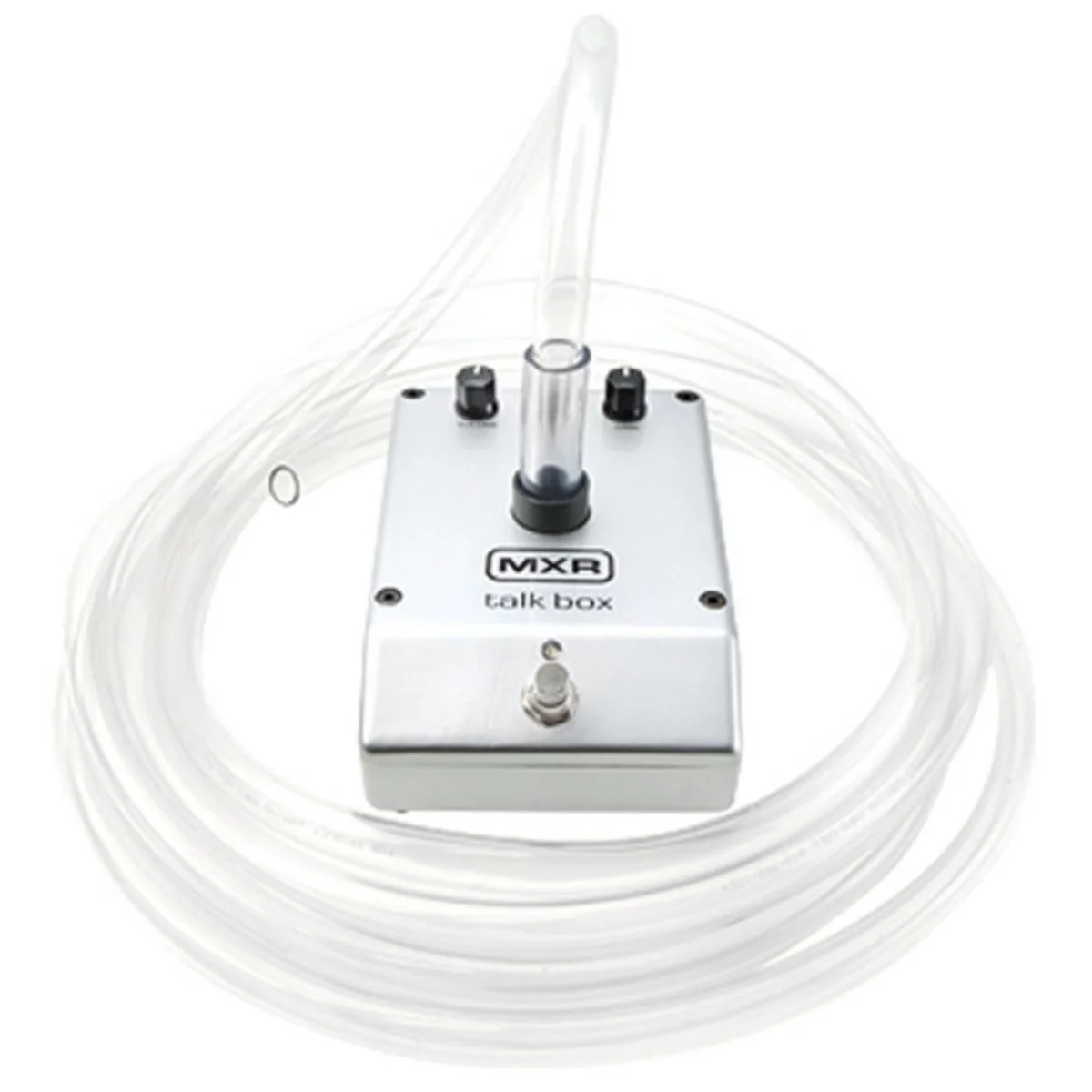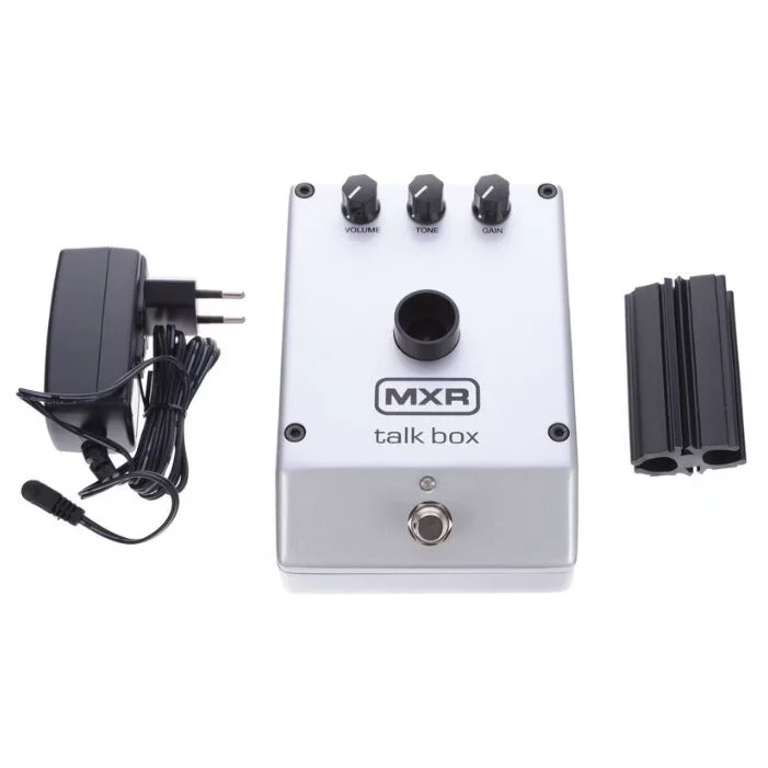 Ток-бокс, эффект «говорящей гитары», уникален тем, что собственно эффектом работает музыкант. ОбычноTalk-box ставится между усилителем и кабинетом, и при активации сам становится мини-кабинетом. Звук по гибкой трубке идет к микрофону, попадает в ротовую полость музыканта и тот, соответствующей мимикой его модулирет. После чего сигнал уже с микрофона идет в микс. И вот эта необходимость ставить что-то между усилителем и кабинетом многих отпугивает, несмотря на все заманчивые творческие возможности. Проблему решает MXR M222 - педаль имеет встроенный усилитель с настройками громкости, тембра и гейна. При активации эффекта, сигнал на выходе отключается (он идет на выход только в режиме байпаса), а дальше все происходит по стандартному принципу работы ток-боксов. Выходная громкость динамика MXR M222 Talk Box достаточна, чтобы в домашних условиях экспериментировать с эффектом и без микрофона. Вы все прекрасно услышите, но стойка для закрепления трубки все же не помешает.