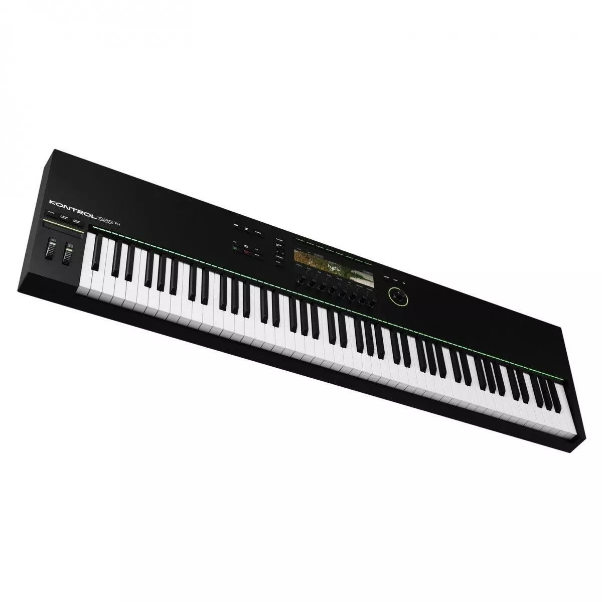 Native Instruments Komplete Kontrol S88 Mk3 - 88-клавишный MIDI-контроллер с взвешенной молоточковой клавиатурой Fatar с полифоническим послекасанием. Модель оснащена цельным корпусом, а также имеет RGB-подсветку над каждой клавишей с отображением разделенных зон/сигнальных ячеек и один крупный цветной экран высокого разрешения со стеклянной поверхностью и разрешением 1280 x 480. Кроме этого, предусмотрены колёса Pitch/Mod из обработанного металла, 8 алюминиевых нажимных энкодеров, крупный регулятор с подсветкой для настроек и функциональные кнопки. Коммутационные возможности представляют из себя порт USB-C (с питанием от шины), разъёмы MIDI I/O, разъёмы под педали сустейна/экспресии и два назначаемых входа для педалей. Стандарт NKS теперь обеспечивает еще более глубокий контроль над NI Komplete и другими совместимыми инструментами. Пользователи смогут просматривать библиотеки пресетов прямо на клавиатуре. На экране отображаются фактические названия параметров вместе с соответствующими элементами управления, а также предоставляется выбор между оптимизированным режимом (лёгкий доступ к наиболее важным параметрам для настройки) и режимом редактирования с несколькими страницами параметров для углубленного редактирования. Модель поставляется с пакетом программного обеспечения, включающим Komplete 14 Select/Kontrol, Stradivari Cello, Hypha, Guitar Rig LE, iZotope Elements Suite и Ableton Live Lite.