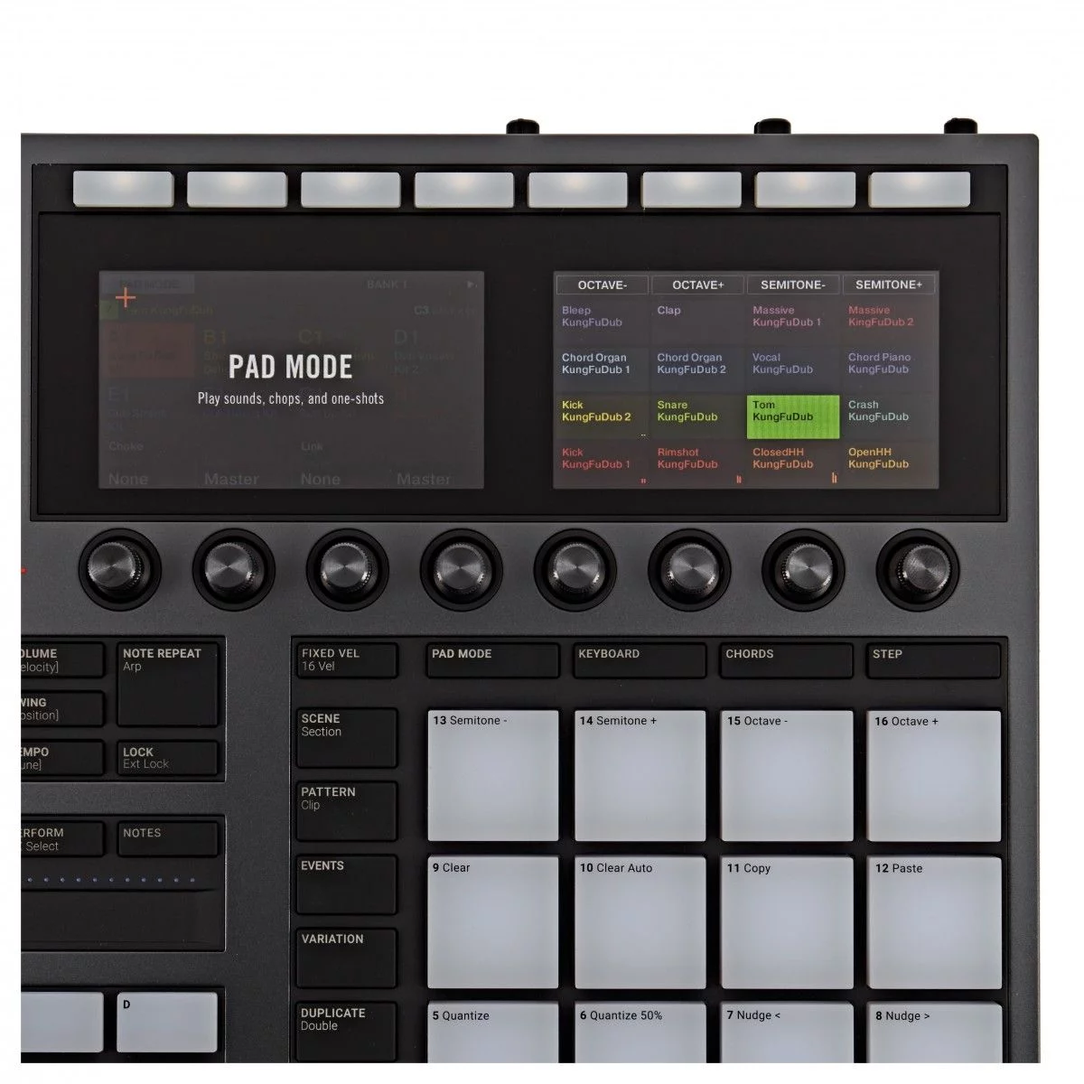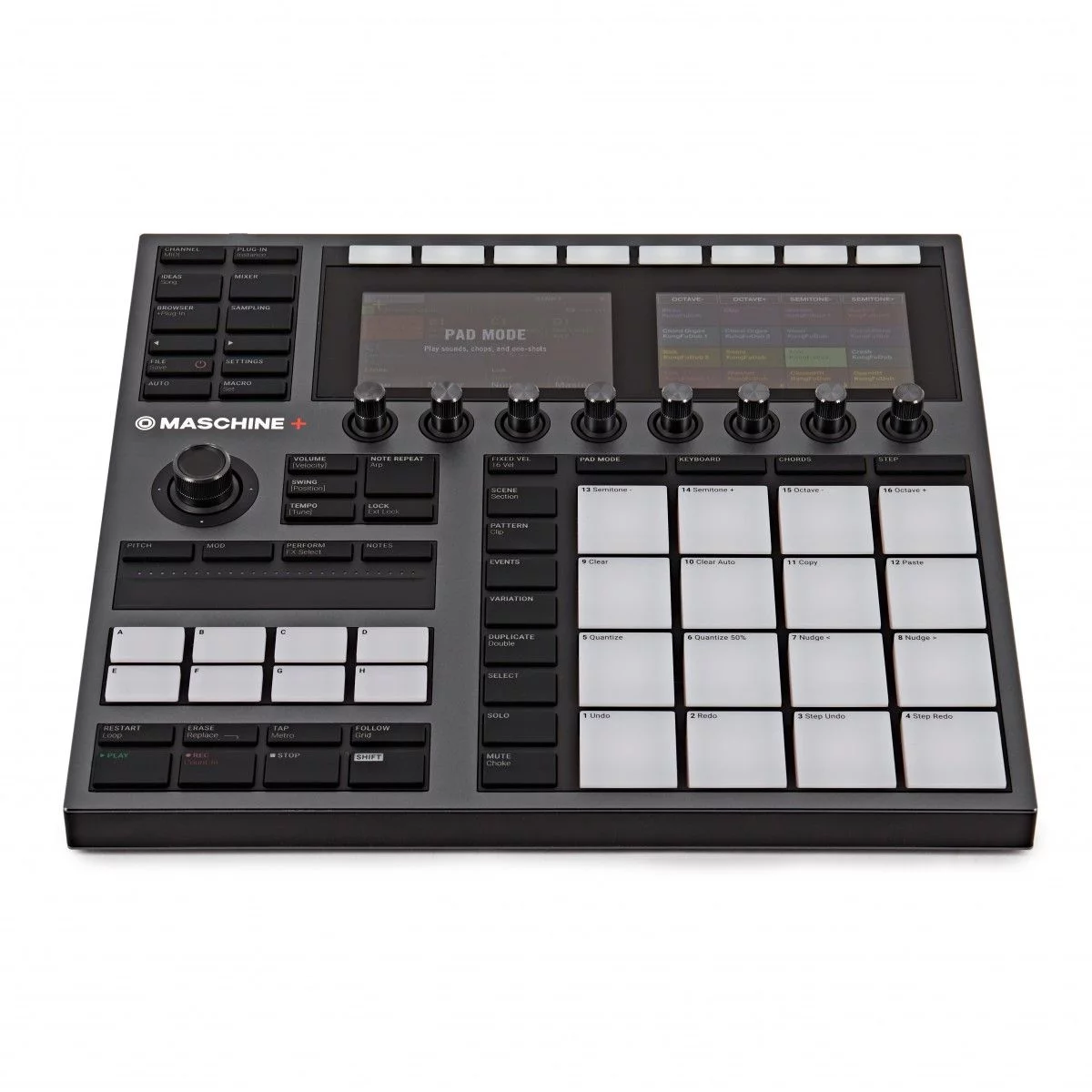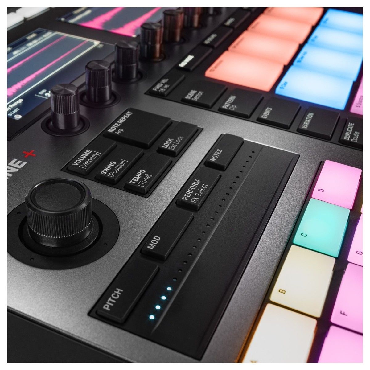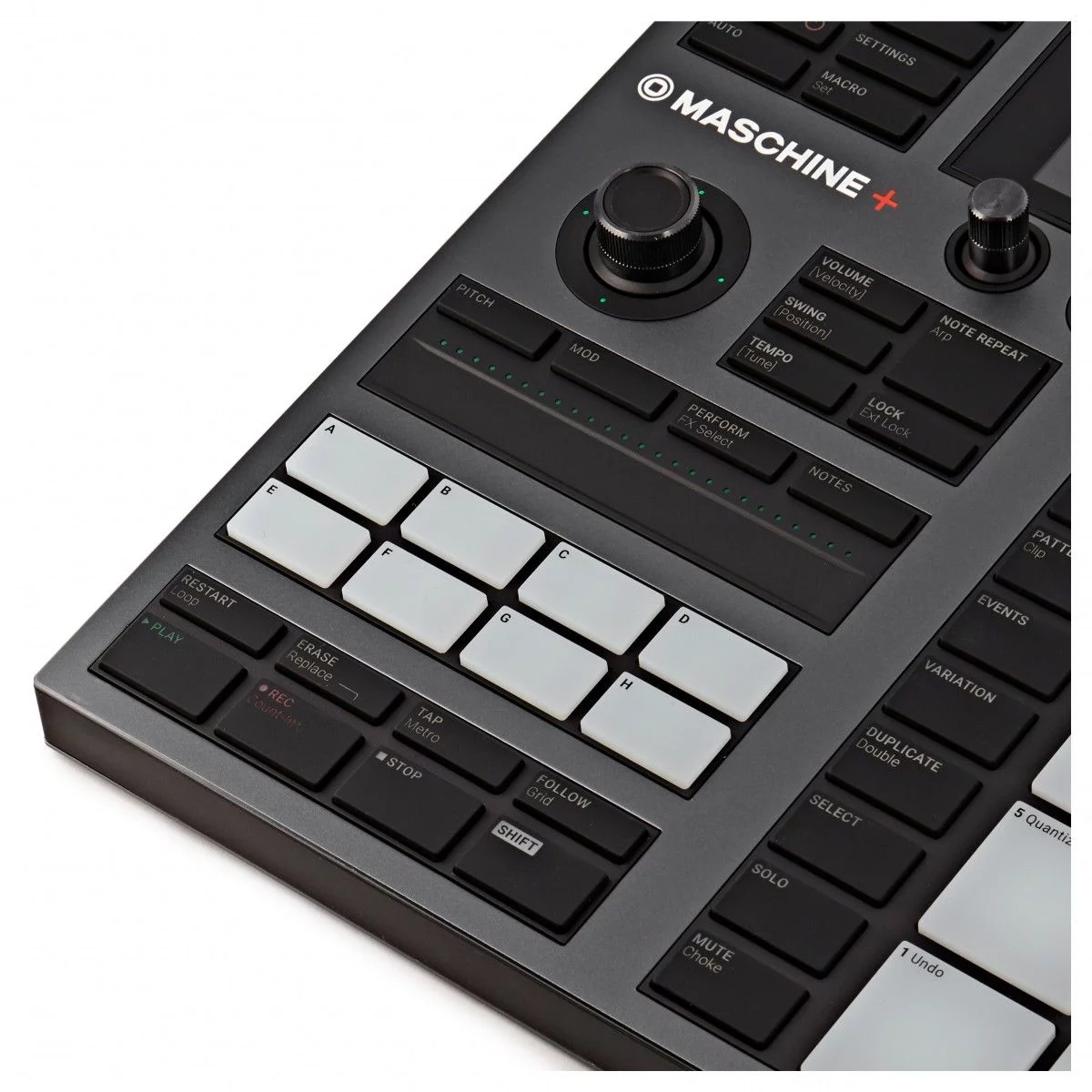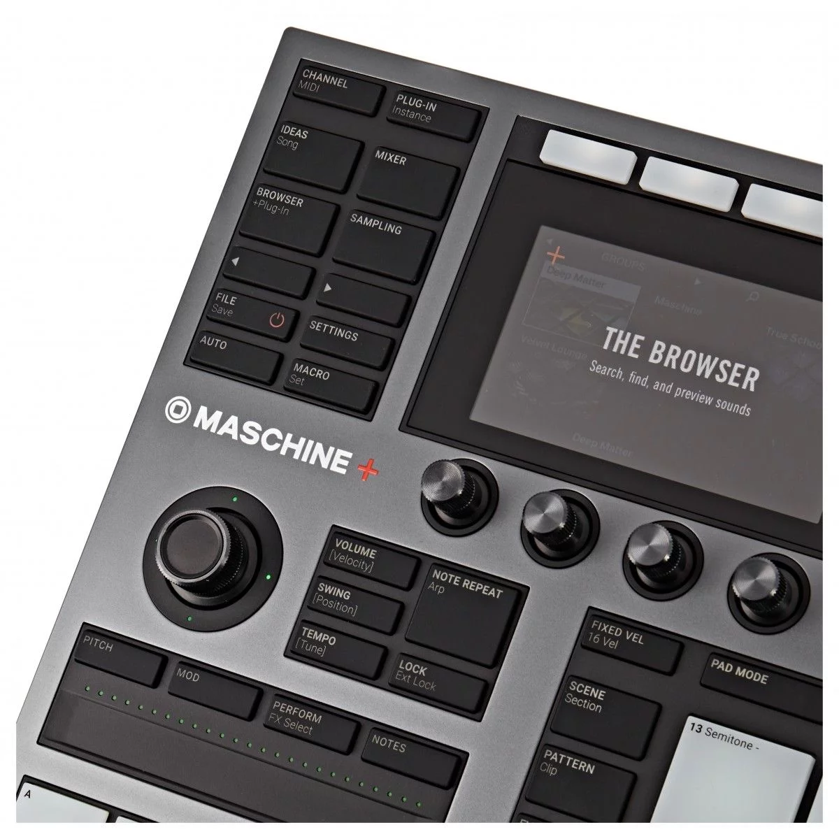 Native Instruments Maschine + - автономный грувбокс, сэмплер и MIDI-контроллер для написания и исполнения музыки. Инструмент имеет интуитивно понятный интерфейс для управления сэмплированием, синтезом и эффектами. Четырехъядерный процессор и 4 ГБ оперативной памяти позволяют быстро и комфортно создавать музыку при автономной работе. Модель оснащена аудиоинтерфейсом профессионального уровня с качеством 44,1 кГц / 24-бит (до 96 кГц / 24 бит в режиме контроллера). На борту имеются все знаковые функции, отличающие рабочий процесс MASCHINE: 16 чувствительных к скорости нажатия пэдов, эффекты и плагины MASCHINE, свинг, связь пэдов, повтор нот, пошаговый секвенсор и эмуляция винтажного сэмплера. Используйте автономный режим или работайте с компьютером — интегрируйте с рабочим процессом в студии и отключите для использования без DAW или для живых выступлений. Также доступна поддержка Wi-Fi и Link для беспроводной установки и обновления продуктов, совместной работы с другими пользователями и синхронизации с другим оборудованием. Прочная конструкция выполнена из анодированного алюминия. Для коммутации устройство оснащено 2 линейными выходами TRS 1/4 дюйма, 2 линейными входами TRS 1/4 дюйма, входом для динамического микрофона 1/4 дюйма, выходом для стереонаушников, MIDI выходом, а также педальным переключателем и 2 портами USB для MIDI-контроллеров или внешних жестких дисков. Контроллер также включает MASCHINE+ Selection с лучшими в отрасли инструментами, звуками и эффектами, а также известные барабанные и басовые синтезаторные плагины и эффекты MASCHINE. Кроме того, доступна заводская библиотека MASCHINE из 8 ГБ высококачественных звуков, наборов ударных и прочего, а также высококачественные инструменты от MASCHINE, такие как FM8, MASSIVE, MONARK, PRISM, REAKTOR Factory Selection R2, KONTAKT Factory Selection и RETRO MACHINES.