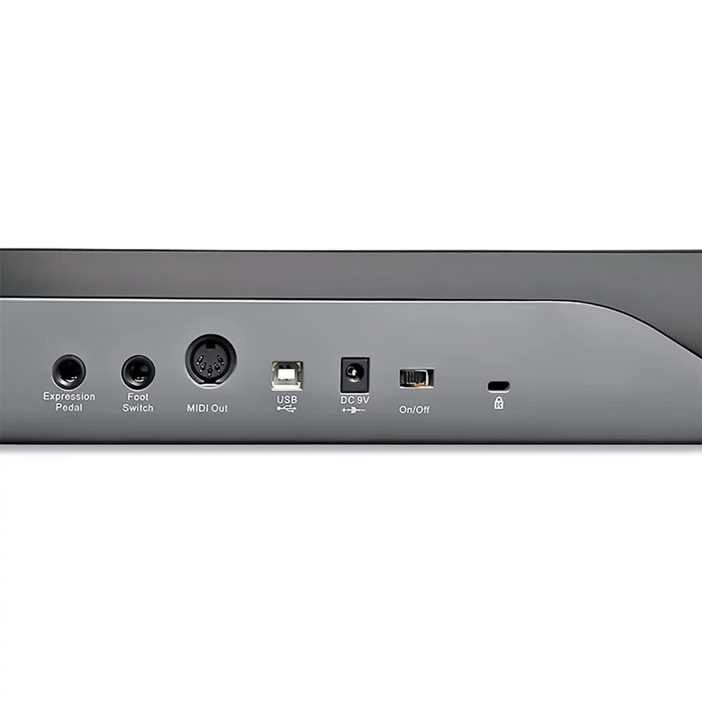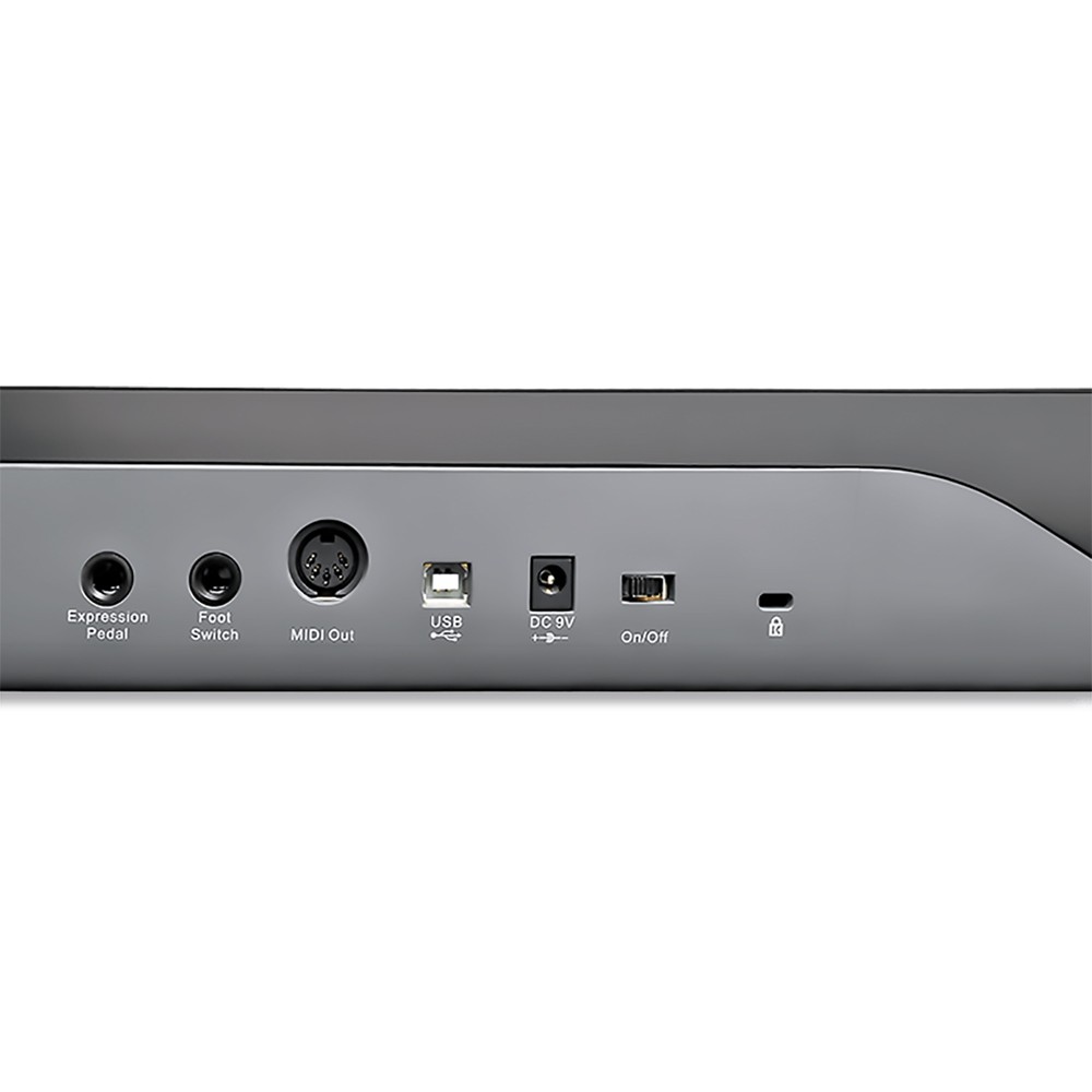 Модель GXP88 предоставляет музыкантам все возможные средства экспрессии, необходимые для живых выступлений и студийной работы, включая колеса высоты тона и модуляции, разъем для педали экспрессии и джек TRS для подключения двух футсвичей. Задняя панель инструмента также включает 5-пиновый MIDI Out и внешний разъем для подключения инструмента, когда он не работает через USB-порт.