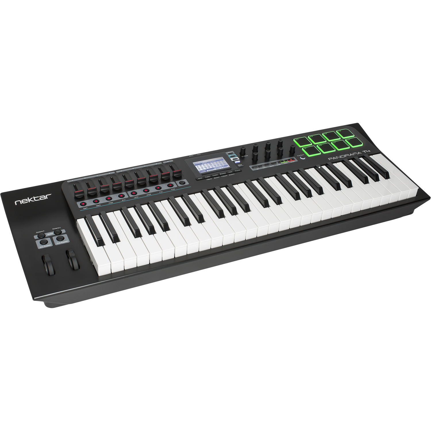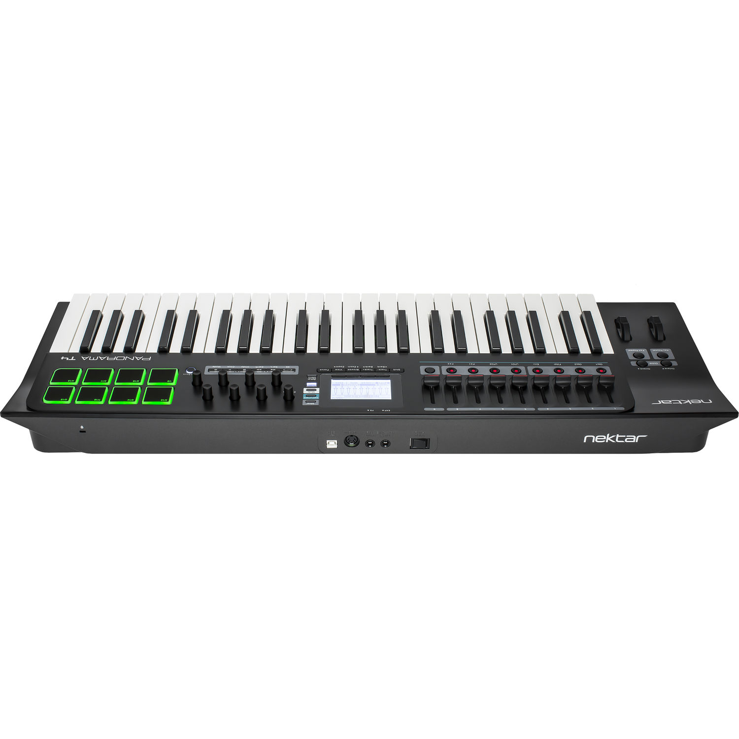 Специально изготовленный LCD дисплей обеспечивает мгновенный доступ ко всем настройкам: здесь можно выбирать режимы работы контроллеров Panorama, настраивать необходимые параметры и осуществлять навигацию по вашему ПО. Благодаря Nektarine и интеграции с секвенсорами, на дисплее вы сможете увидеть даже микшер вашего секвенсора и параметры плагинов.