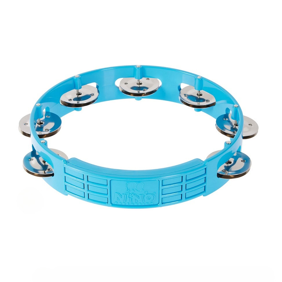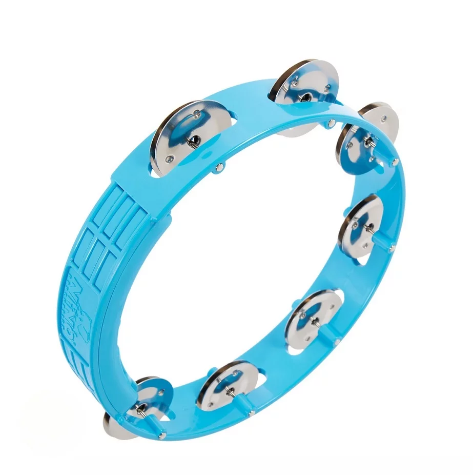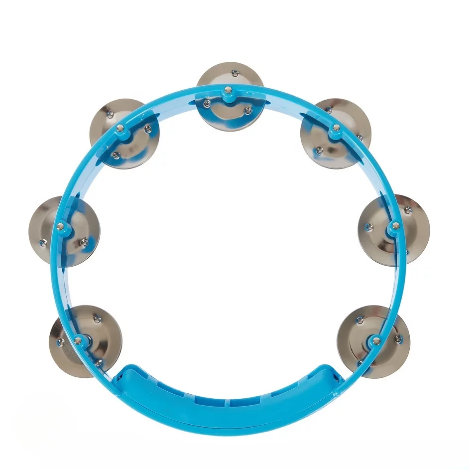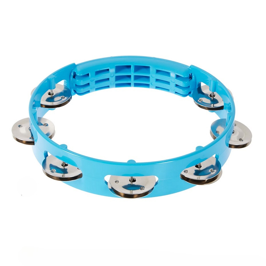 Тамбурин пластиковый 8", однорядный, сталь, цвет синий.