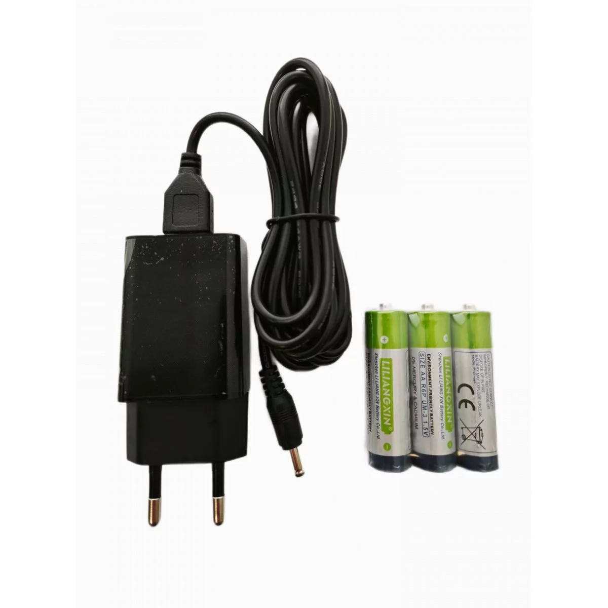 В комплекте поставки адаптер питания 5В AC и 3 х АА 1,5 батарейки