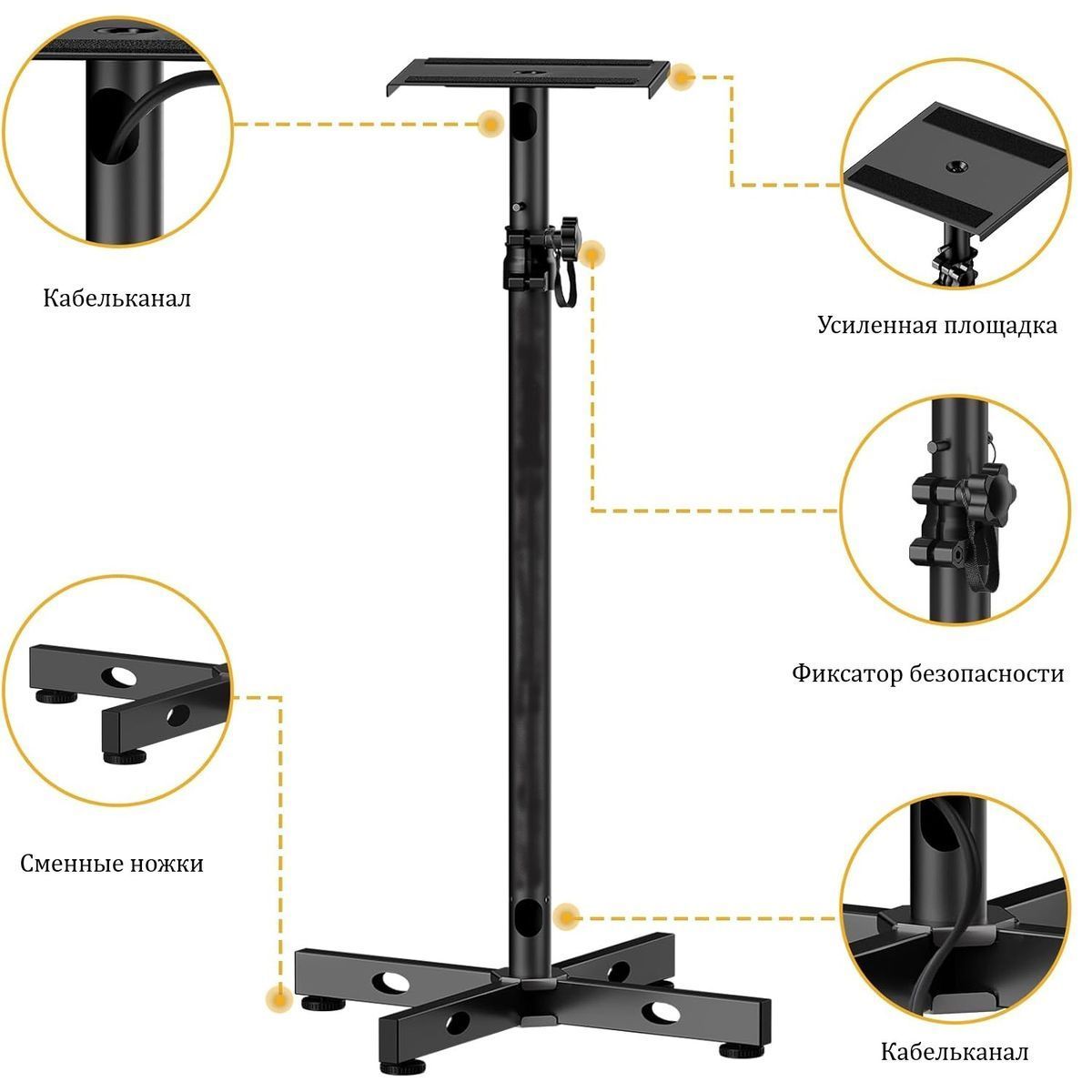 Комплект напольных стоек для акустических мониторов с кабельканалом.