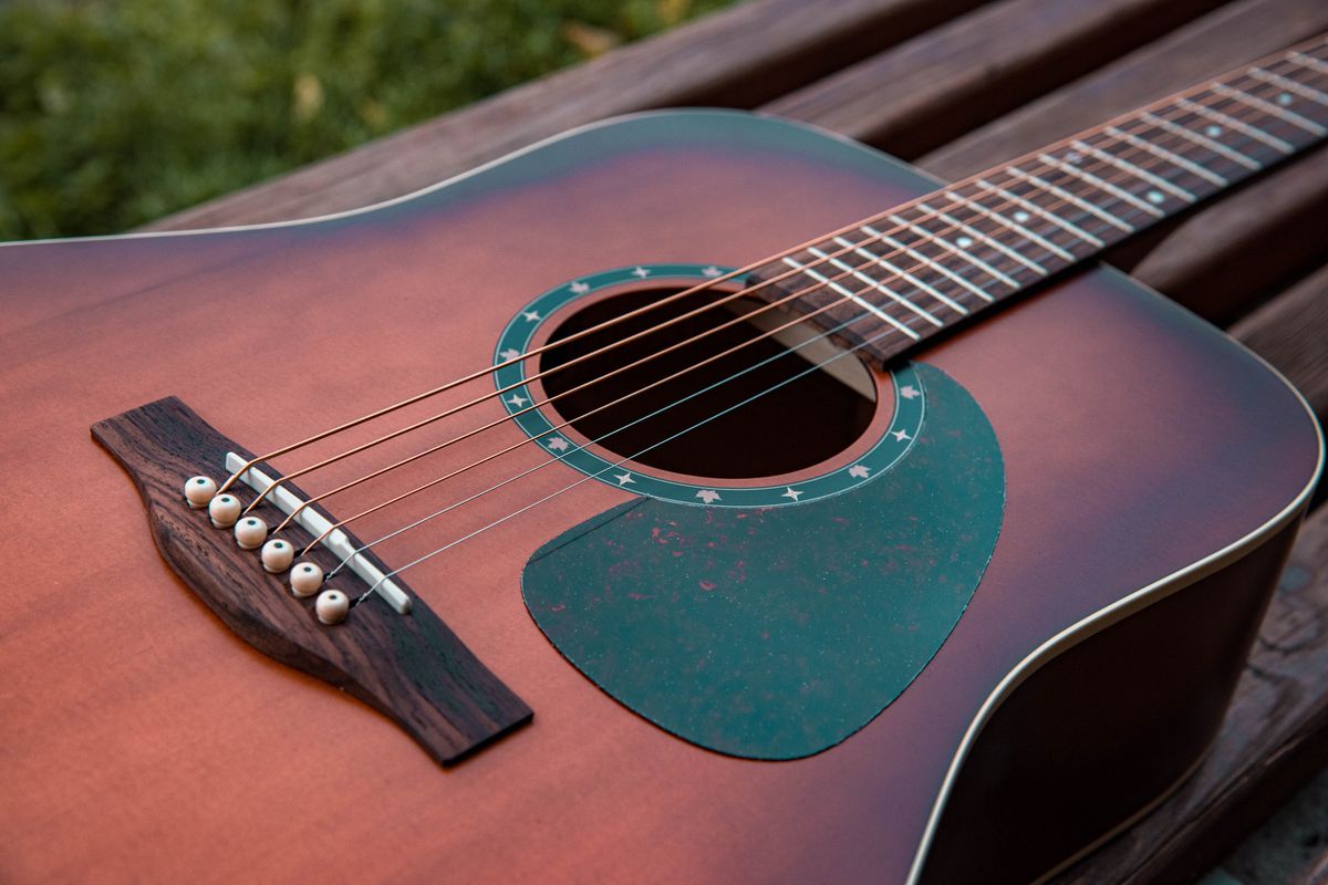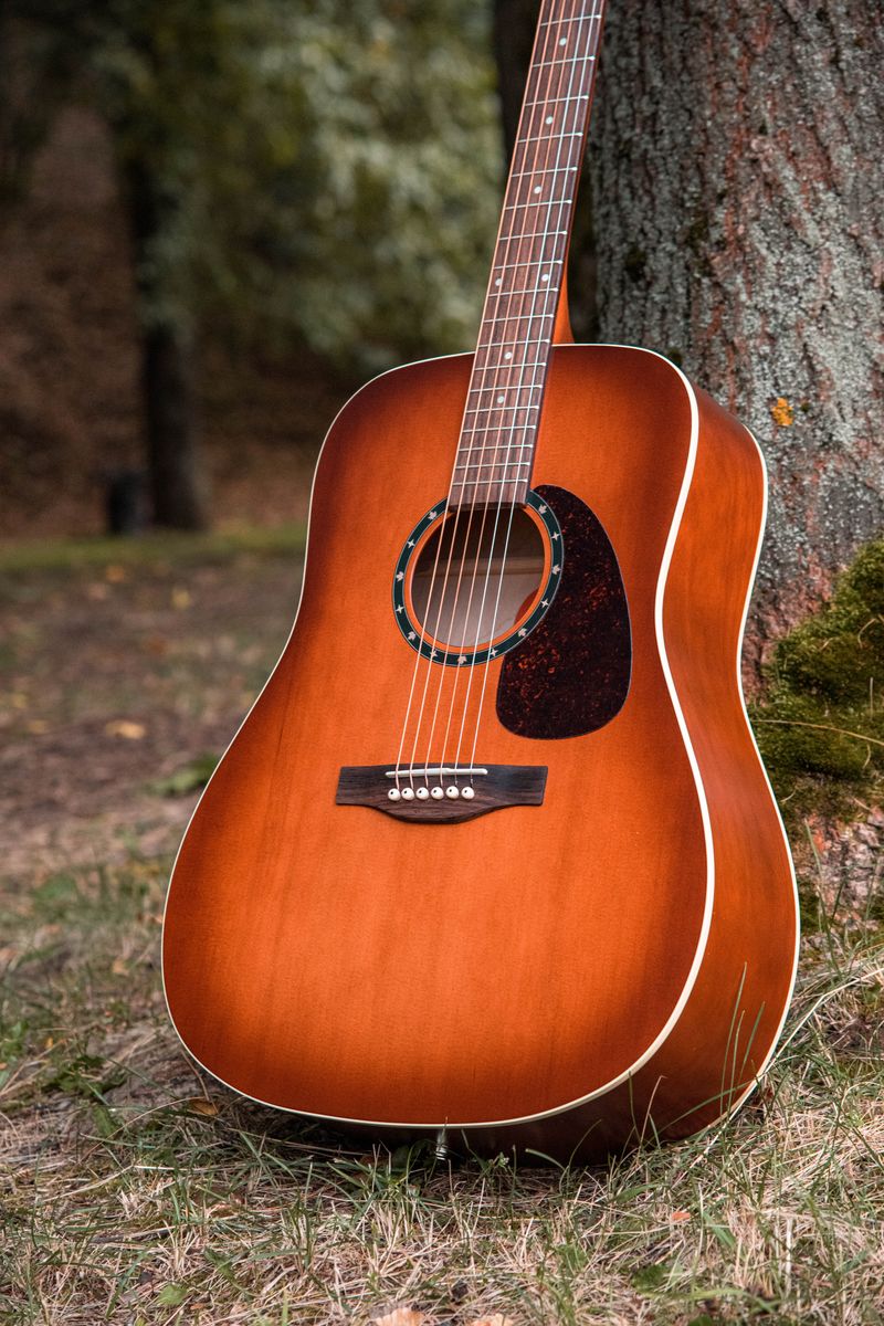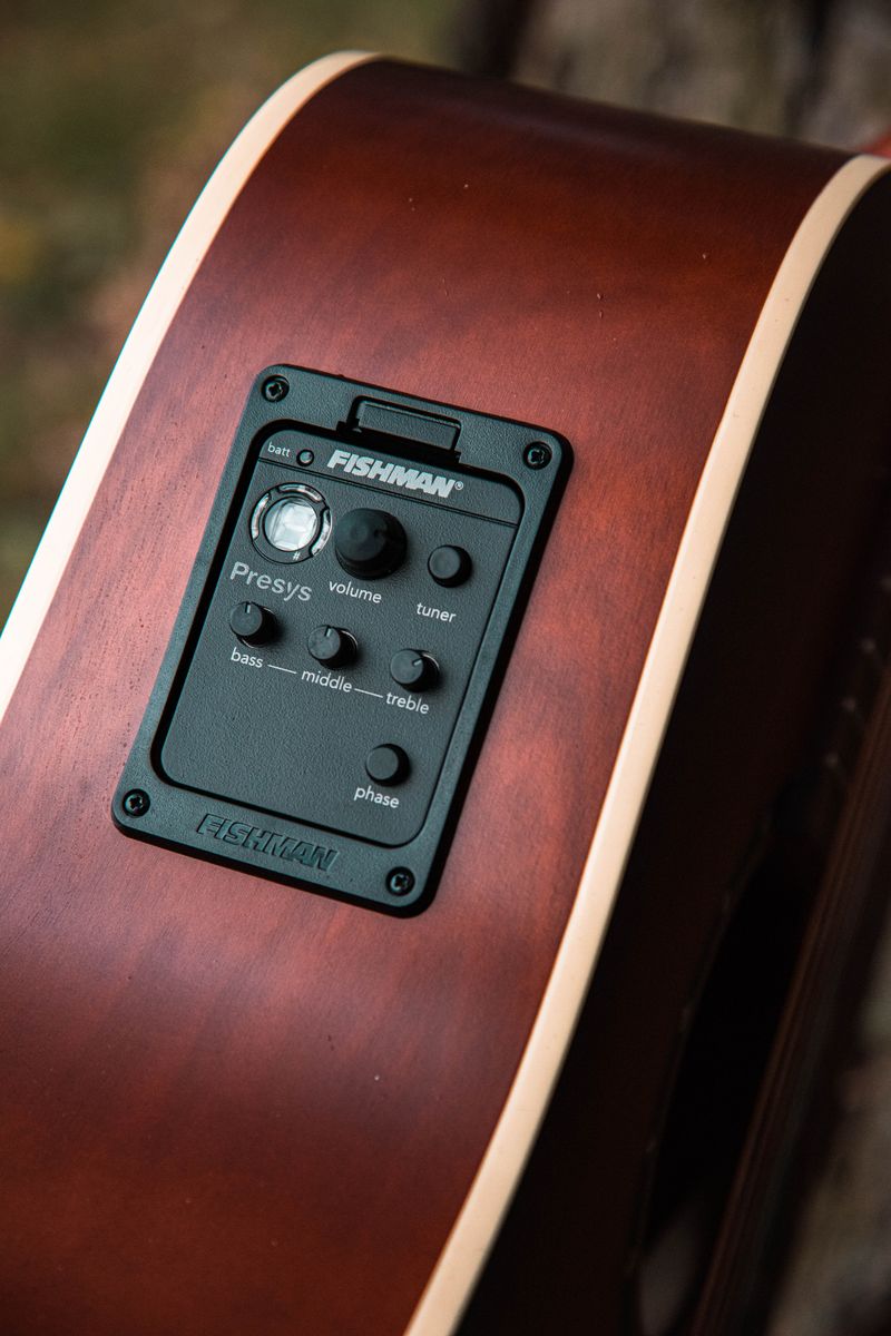 Электроакустическая гитара Dreadnought, верхняя дека - кедр, обечайка и нижняя дека - вишня, гриф - клен с пралисандровой накладкой, электроника Fishman Presys, цвет санберст.