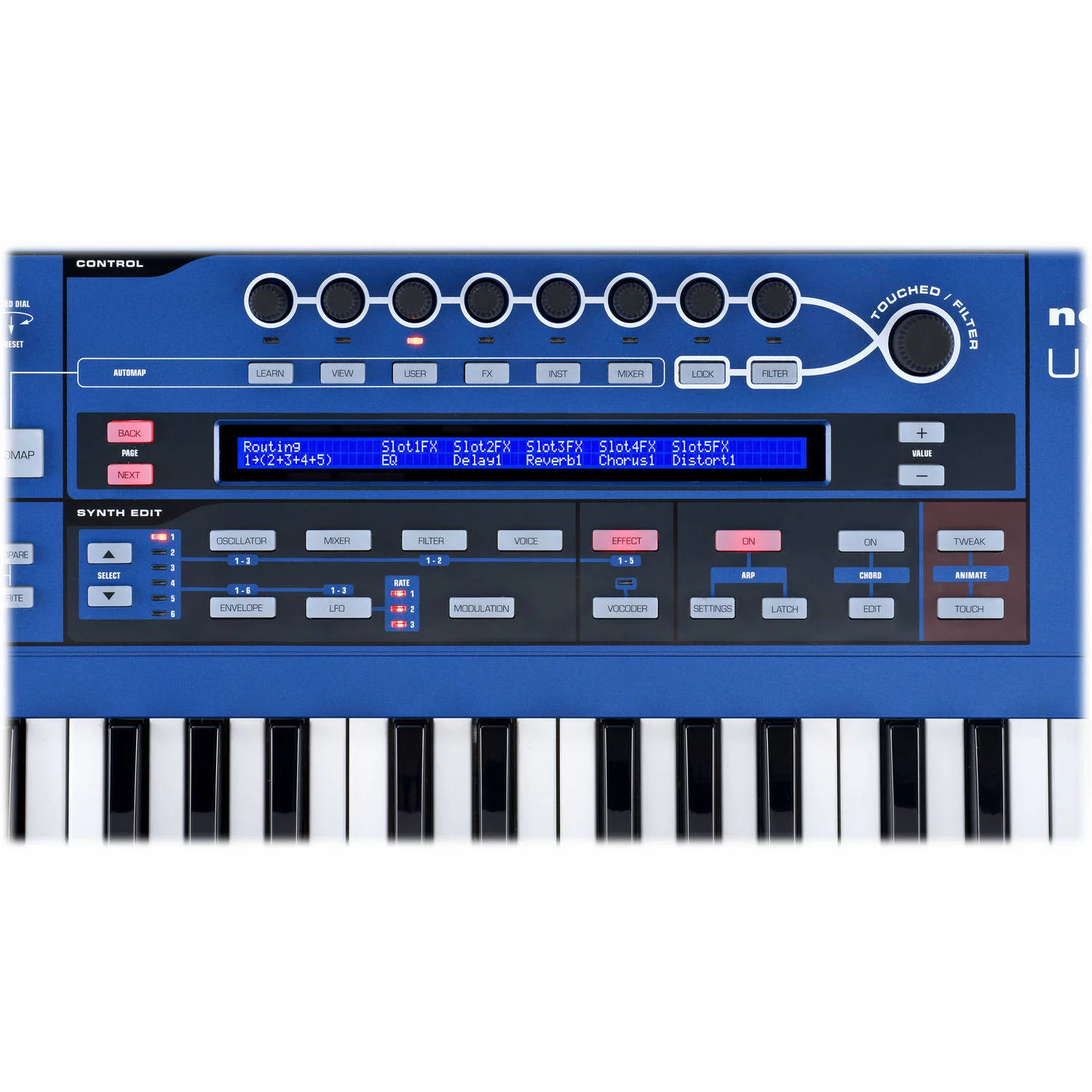 Синтезатор оборудован 37 полноразмерными клавишами с эффектом послекасания, которые дополнены богатым набором функциональных органов управления и динамическими контроллерами. Клавиатура синтезатора является ярким представителем известной серии FATAR. Такой тип клавиш сочетает в конструкции инерционность и отскок, точно также, как это реализовано на FM-пиано. Клавиатура имеет приятный, плавный ход, который хорошо сочетается с упругостью при дожатии клавиш. Для удобства и возможностей расширения функций клавиш и контроллеров синтезатор предлагает воспользоваться режимом TOUCHS SENSE, который поможет изменить и настроить функции контроллеров под каждого пользователя индивидуально. В дополнение синтезатор поддерживает новую функцию Automap с регистрационным кодом.