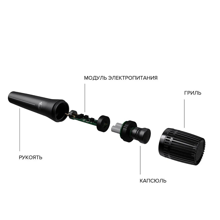Профессиональный ручной вокальный конденсаторный микрофон с внешней поляризацией капсюля, оснащен встроенными амортизатором, поп-фильтром и ветрозащитой. Микрофон имеет кардиоидную диаграмму направленности. Предназначен