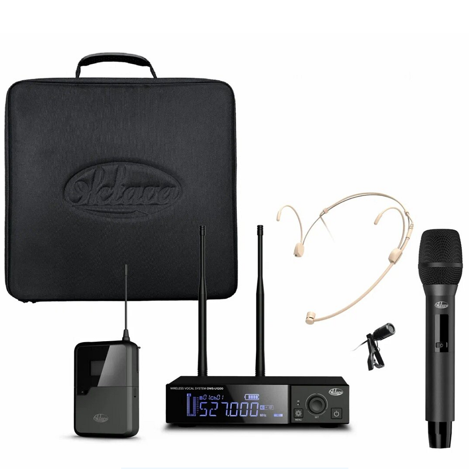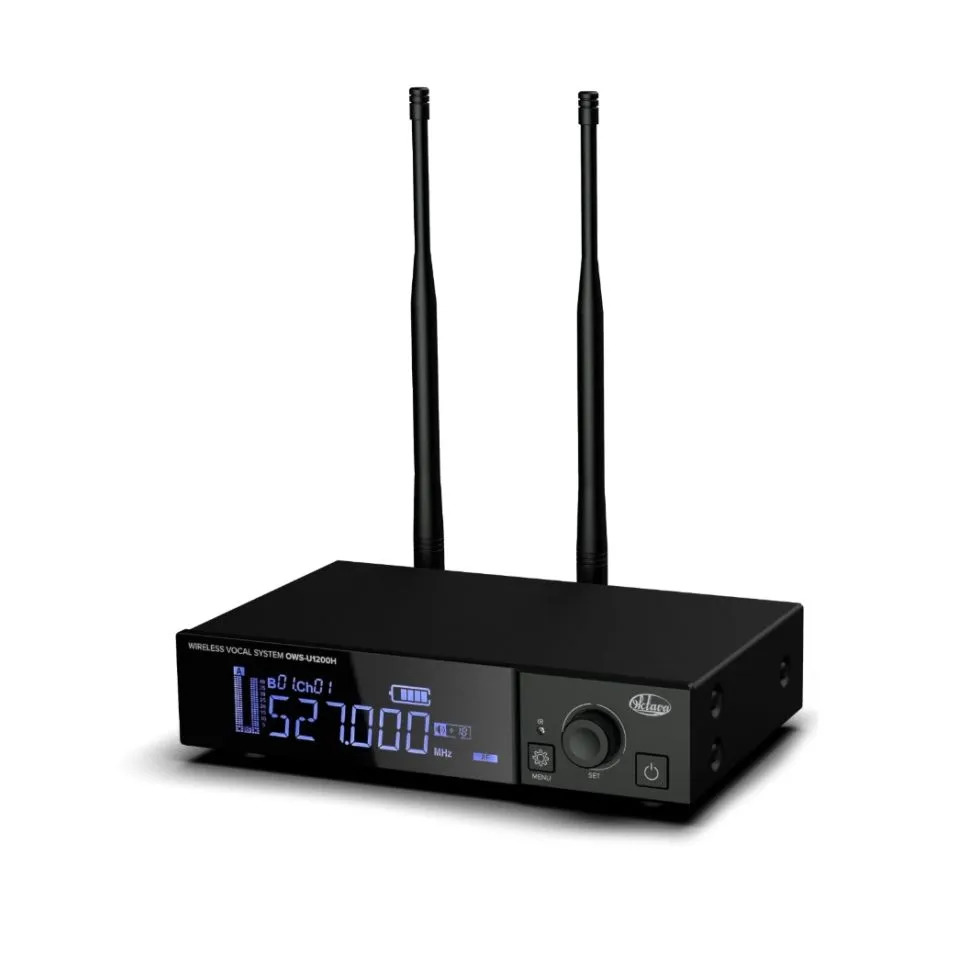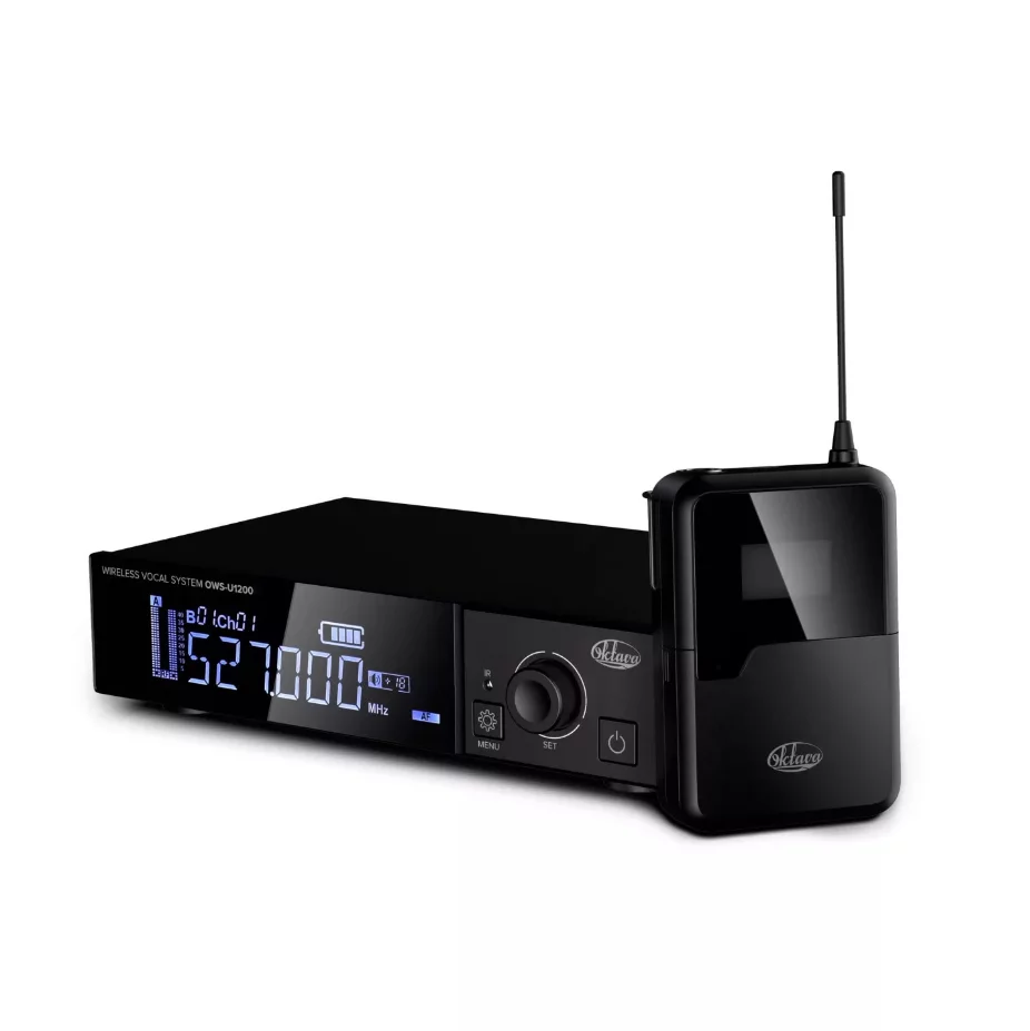 OWS-U1200L Радиосистема с ручным передатчиком,поясным передатчиком, с оголовьем OWS-D01 и петличным микрофоном OWS-L01, поставляется в фирменном кейсе.